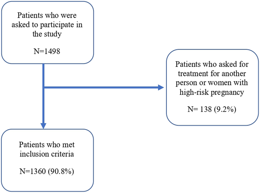 The sample size was estimated to fulfil the second of the objectives of the established protocol, which was to evaluate the impact of a Professional Pharmaceutical Service on both patients’ symptoms and quality of life. We estimated the number of people to assess 0.1 units of change over the GERD Impact Scale questionnaire (GIS), a 4-point Likert scale between 2 visits (from 2.2 to 1.1) with an SD of 0.6 through the estimation of the mean in repeated measures (López-Pintor et al., 2022). Taking into account an alpha risk of 0.05, two-sided test and a beta risk of 0.20 with a dropout of 20% we initially included 707 patients. However, we then increased the sample size to 1,200 patients (15 patients per variable) because we wanted to analyse different factors associated with relevant sociodemographic and clinical variables. This sample size allowed us to adequately describe the sociodemographic and clinical characteristics in patients with upper gastrointestinal symptoms who visited community pharmacies, which was the aim of the present study.