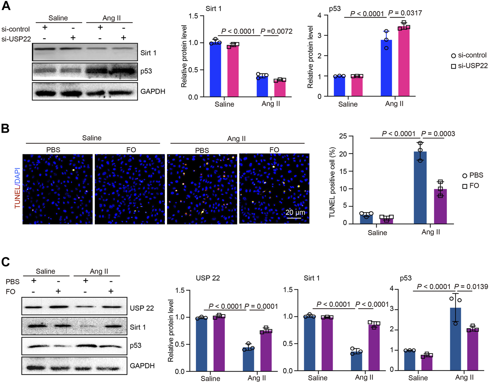 The decrease in USP22 aggravated Ang II-induced apoptosis, and FO rescued this effect