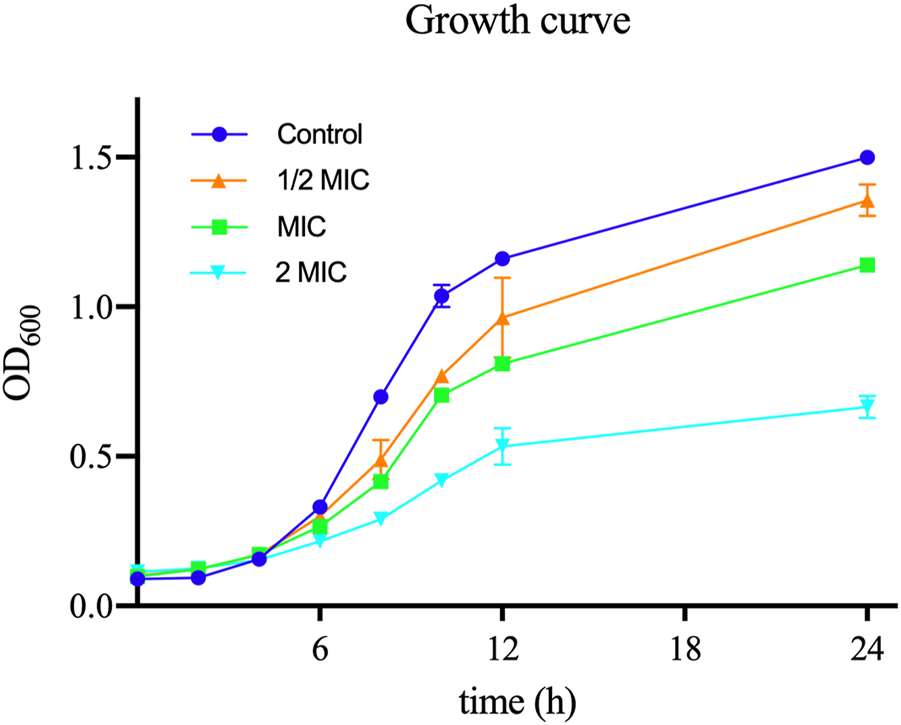 2.2 Determination of the minimum inhibitory concentration (MIC) of TA and growth curves