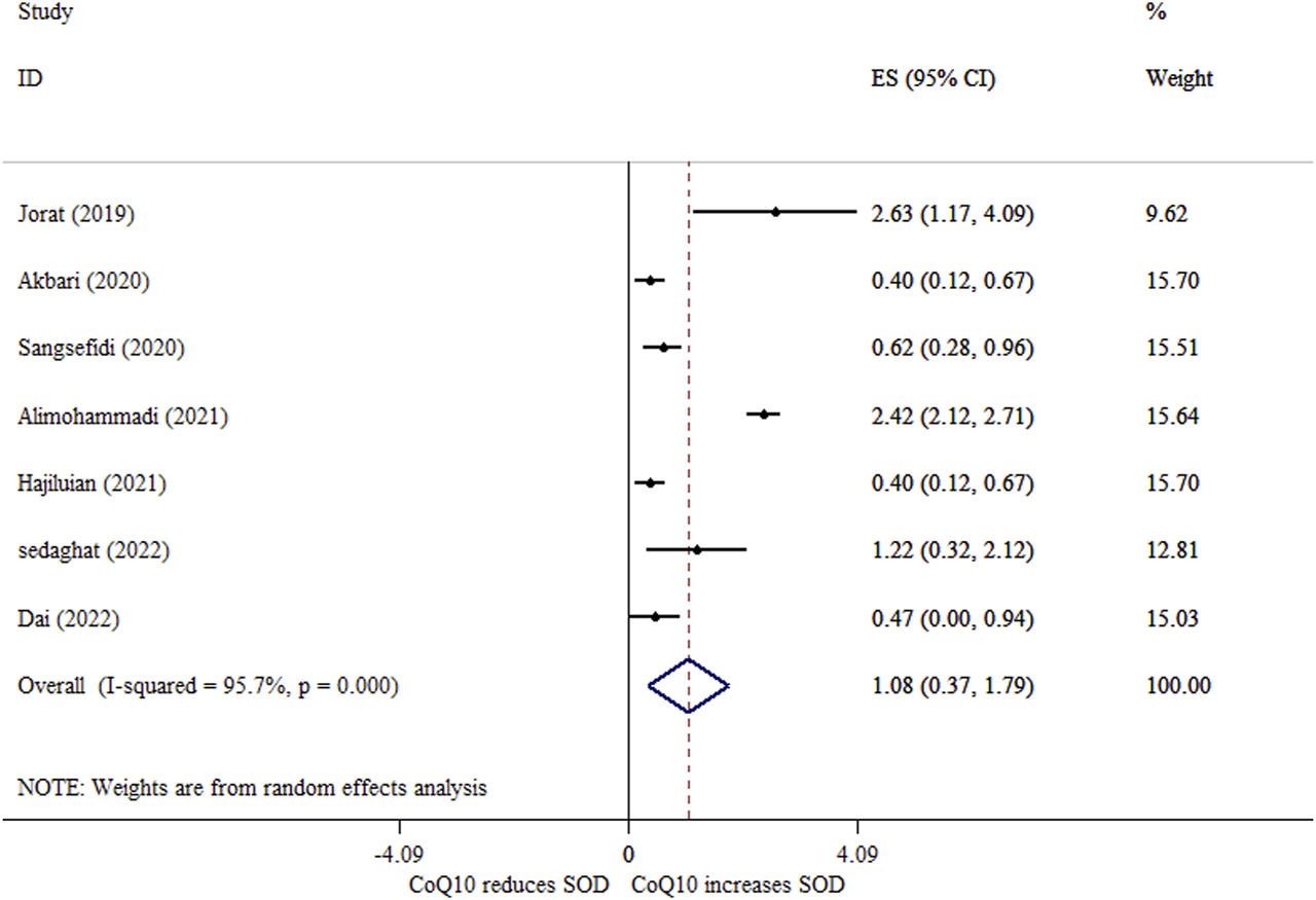 3.11 Effects of CoQ10 supplementation on SOD activity based on SMD analysis