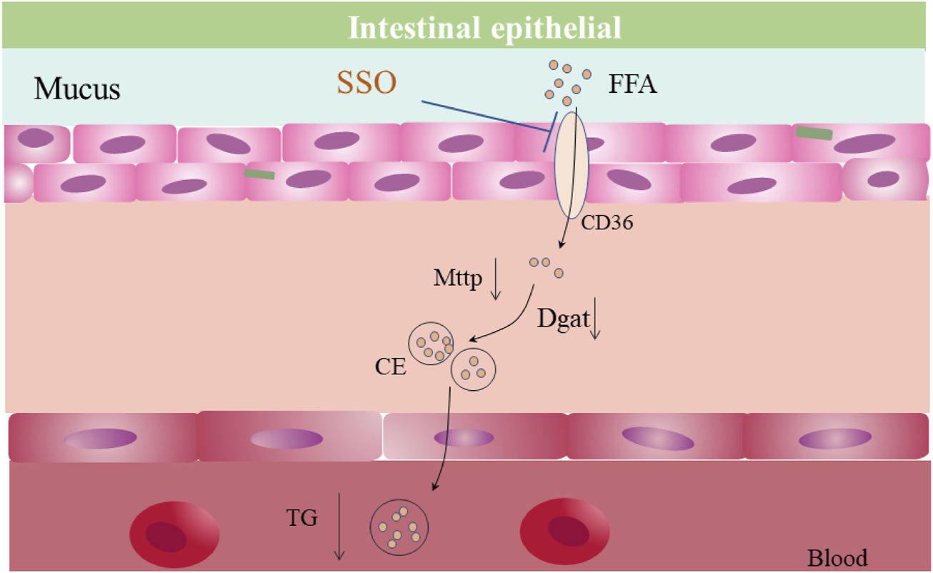 Possible mechanism of reduced intestinal lipid absorption by SSO.