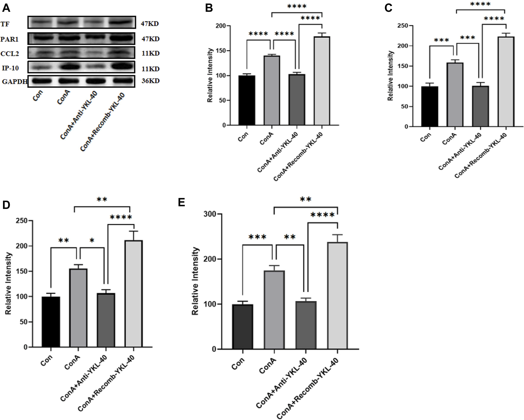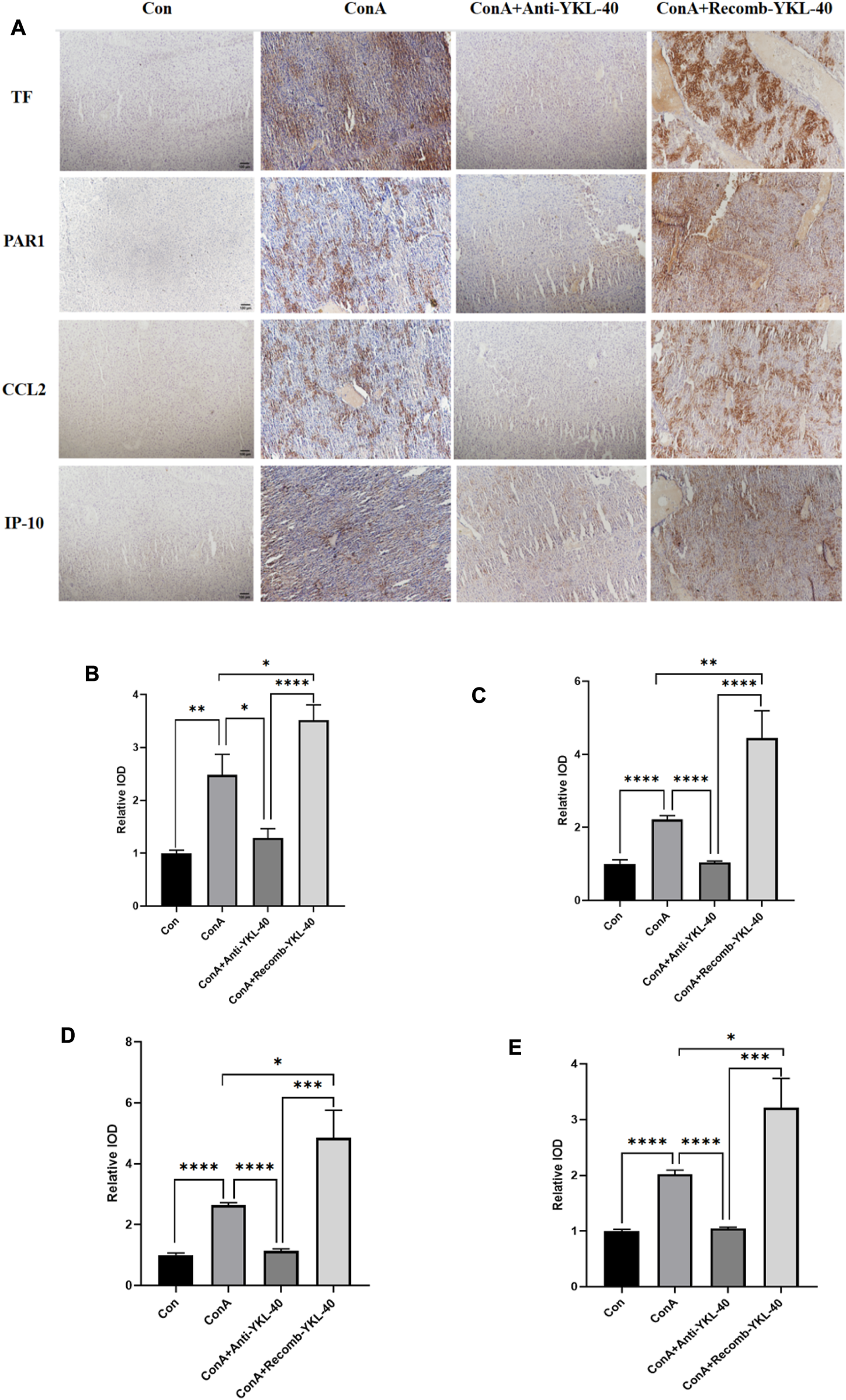 Methods: We established a liver injury model using Concanavalin A (ConA) in C57 BL/6 mice. By adopting various experimental techniques, the effect of YKL-40 induced TF-PAR1 pathway on the expression of downstream chemokine ligand 2 (CCL2) and IP-10 was verified.