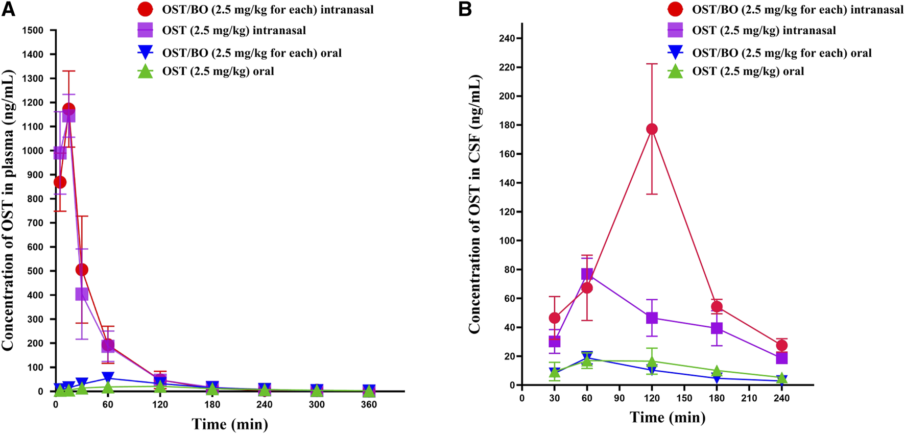 2.5 Comparative pharmacokinetic study of OST in rat CSF and plasma under intranasal and oral administration