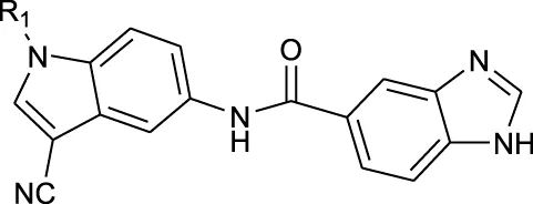 | 38 | Cyclopentyl | H | CN | 0.73 | 0.14 | −0.15 |