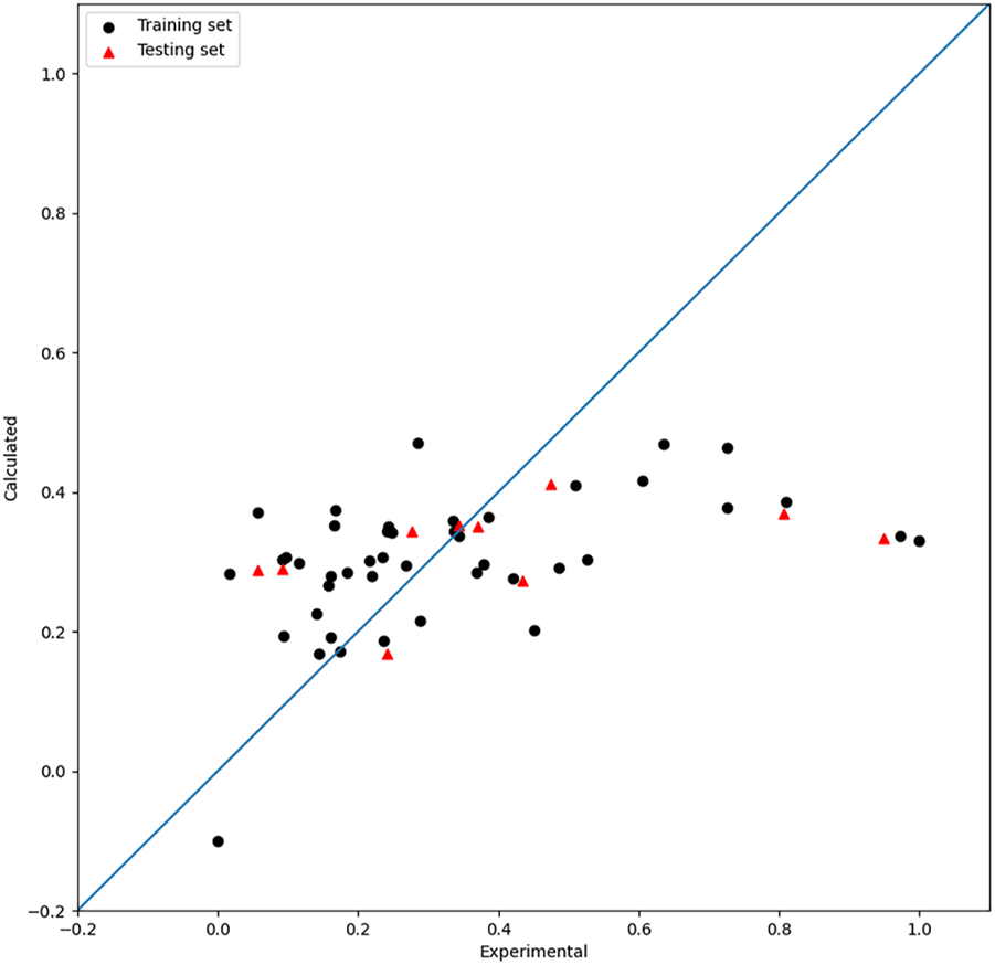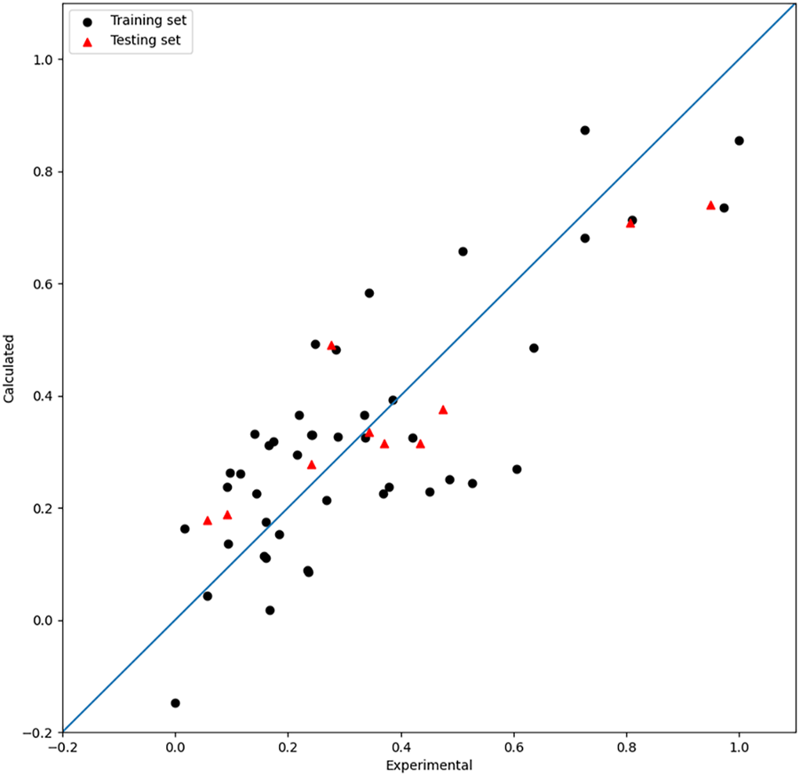 The compounds listed in Table 1 were taken from the following papers: Tu et al., 2021; Zhang et al., 2021; Zhang et al., 2022. All values were measured in the same experimental environment. The compounds were randomly divided into training and test sets, which contain 44 compounds and 10 compounds, respectively.