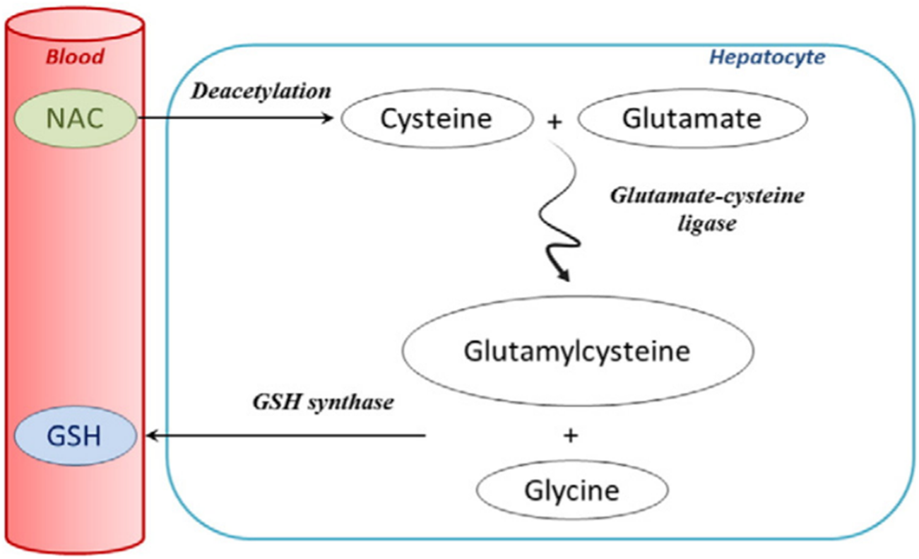 Extensive first-pass metabolism of NAC in the liver after oral administration (Lasram et al., 2015; reprinted from Clinical Biochemistry with permission).