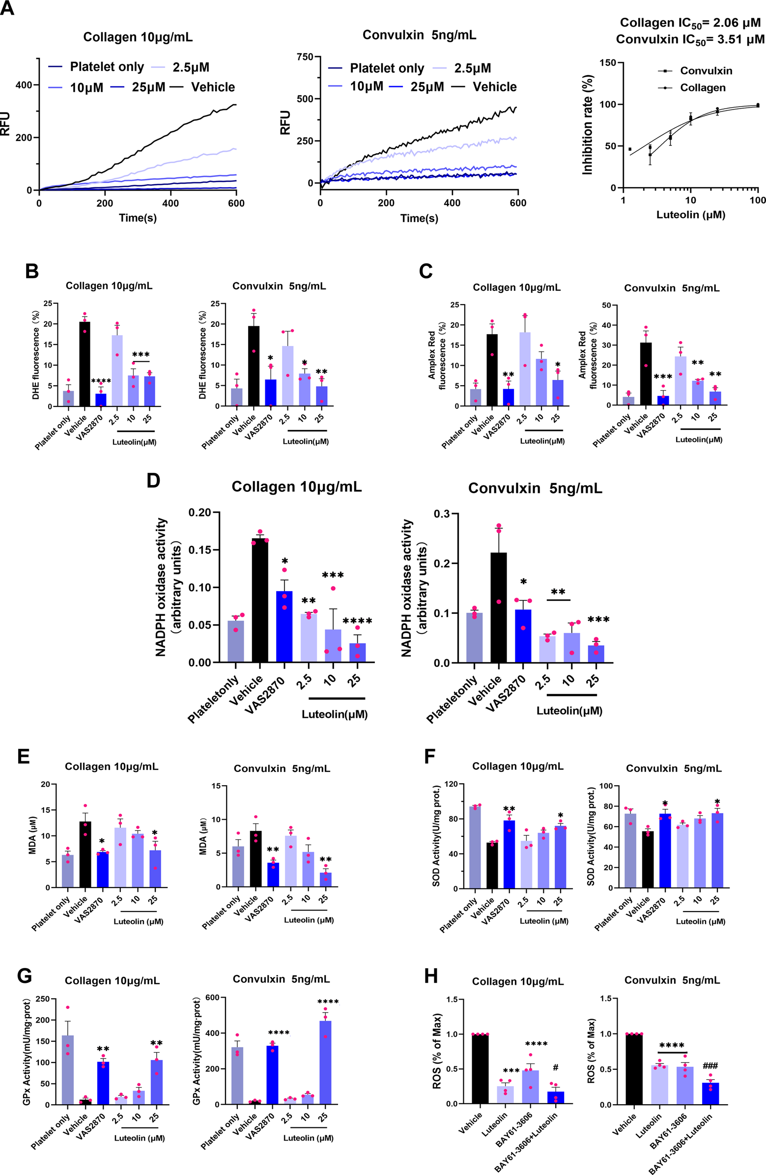 Ye Y, Yang L, Leng M, Wang Q, Wu J, Wan W, Wang H, Li L, Peng Y, Chai S and Meng Z (2023) Luteolin inhibits GPVI-mediated platelet activation, oxidative stress, and thrombosis. Front. Pharmacol. 14:1255069. doi: 10.3389/fphar.2023.1255069