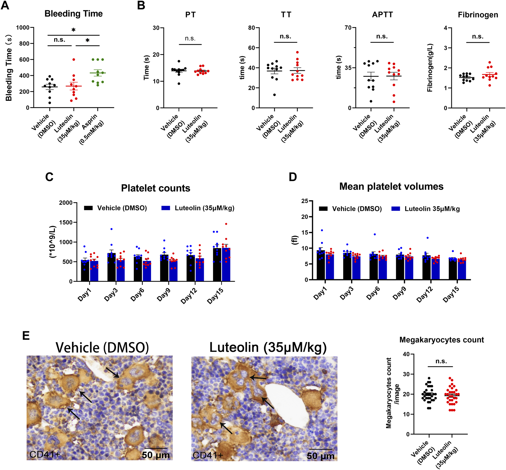 3.8 Luteolin led to no significant effect on hemostasis and coagulation function in mice