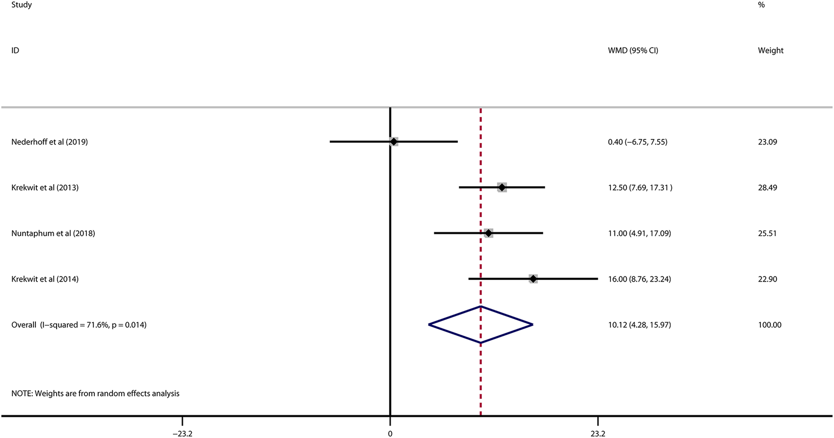 | Pooled estimates | No. of studies | WMD (95% CI) | p-Value |