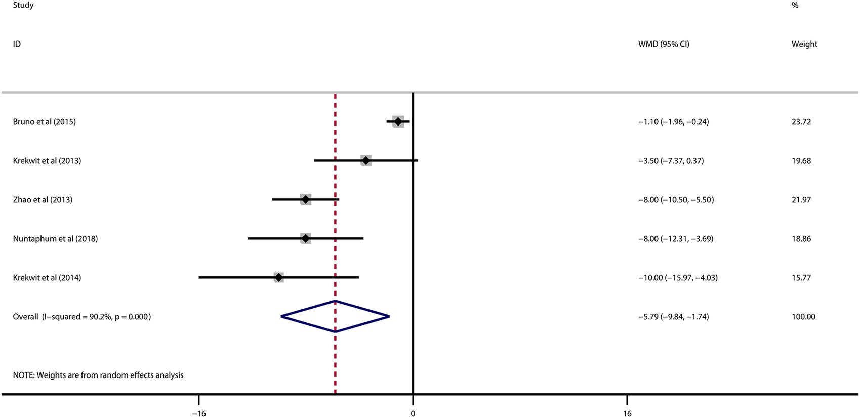 | 60min | 5 | −28.62 (−39.31; −17.92) | <0.001 |