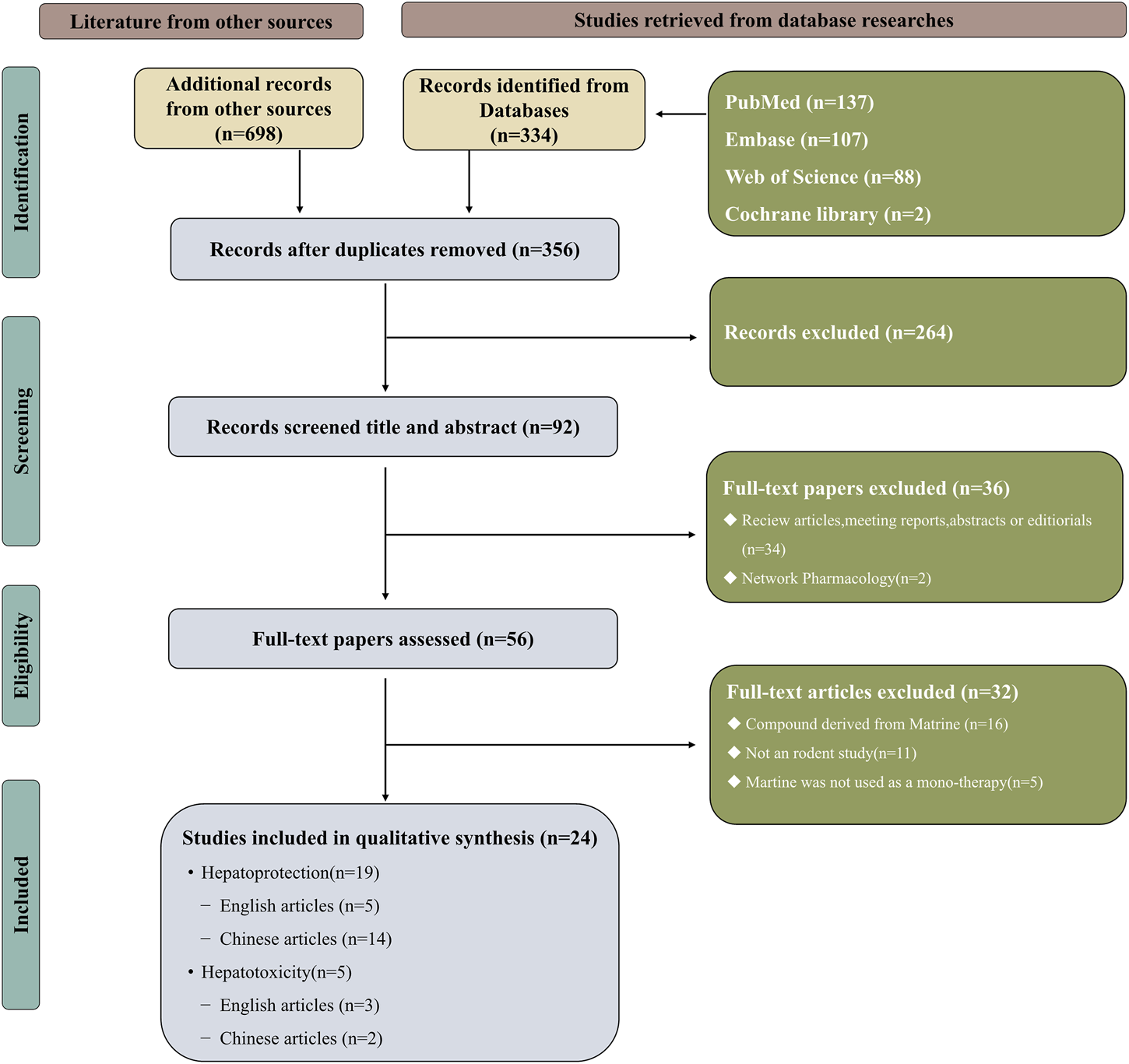 The search terms were “Matrine,” “liver injury,” “hepatoprotection,” and “hepatotoxicity”. (Figure 2 and Supplementary Table S1).