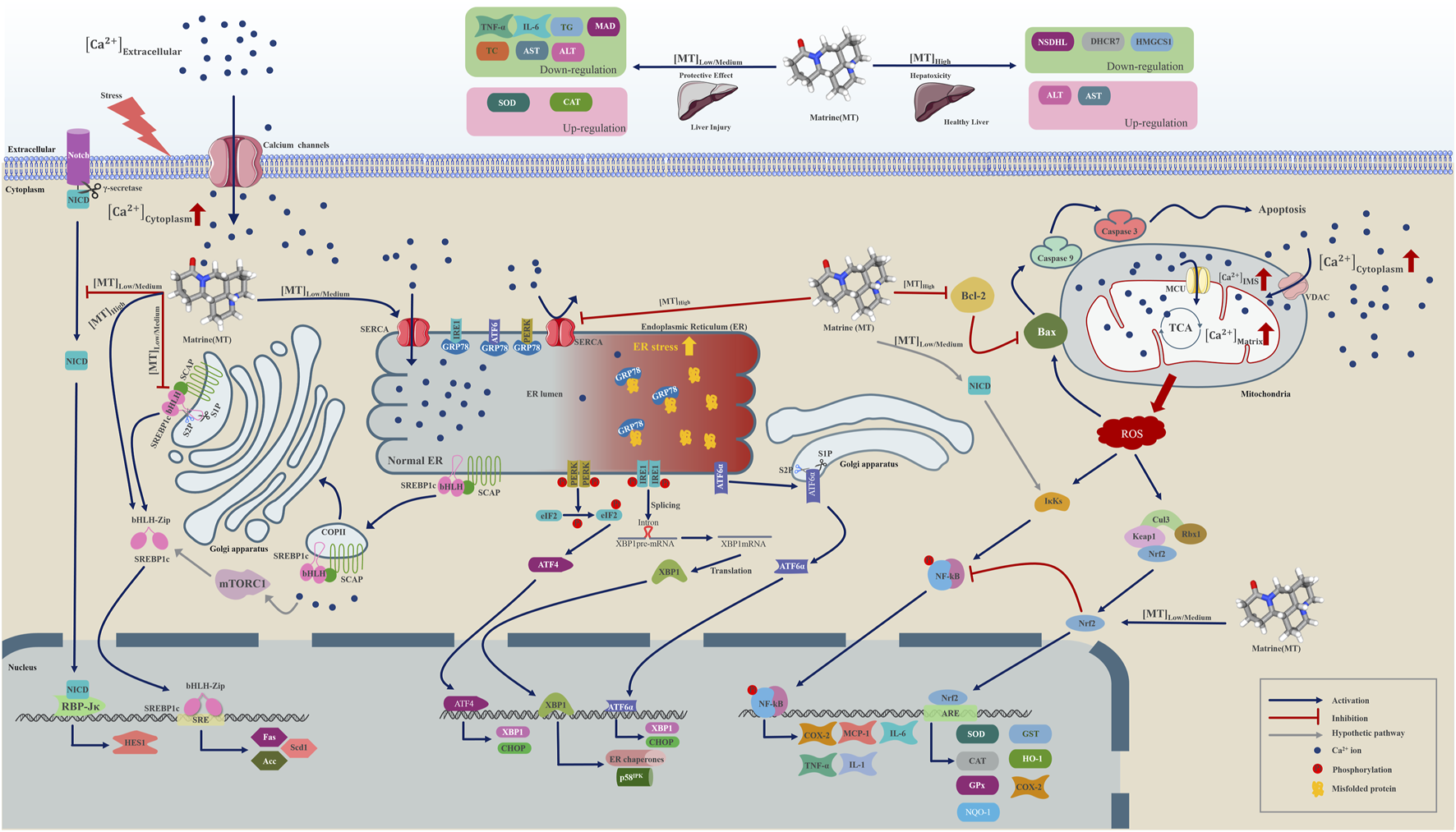 Conclusion: Matrine has bidirectional effects on the liver at doses ranging from 10 to 69.1 mg/kg by influencing Ca2+ homeostasis in the cytoplasm, endoplasmic reticulum, Golgi apparatus, and mitochondria.