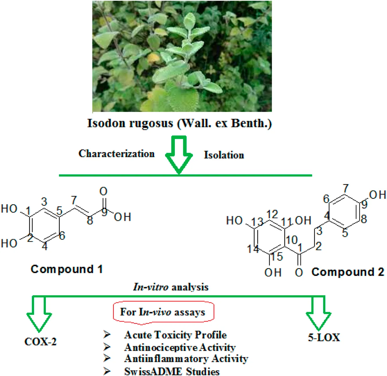 Ethnomedicinally, it is also used in the management of conditions such as hypertension, pyrexia, and rheumatoid arthritis, as an antiemetic and antispasmodic, and for its antimicrobial and antifungal activities (Khan and Khatoon, 2007; Adnan et al., 2012; Janbaz et al., 2014; Shuaib et al., 2014). Considering the ethnomedicinal applications of I. rugosus, the present research work is carried out to determine the analgesic and anti-inflammatory effects of the isolated compounds from I. rugosus through both in vivo and in vitro investigations, along with elucidating the underlying mechanisms.