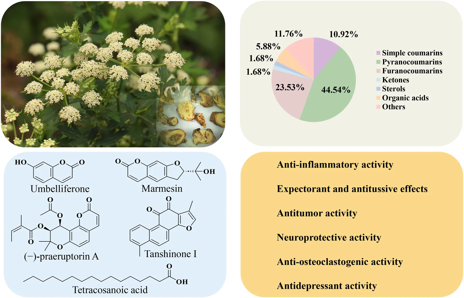 Peucedanum praeruptorum , pharmacology, phytochemistry, traditional uses, quality control