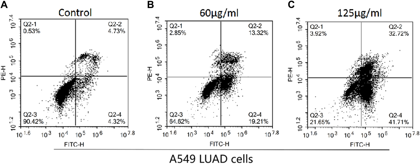 In experiments, A549 cells cultured to logarithmic growth stage were divided into six groups. Cells were treated with different doses of the