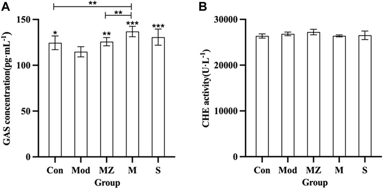 3.3 Effects of MMF on GAS and CHE concentrations in the serum of model mice