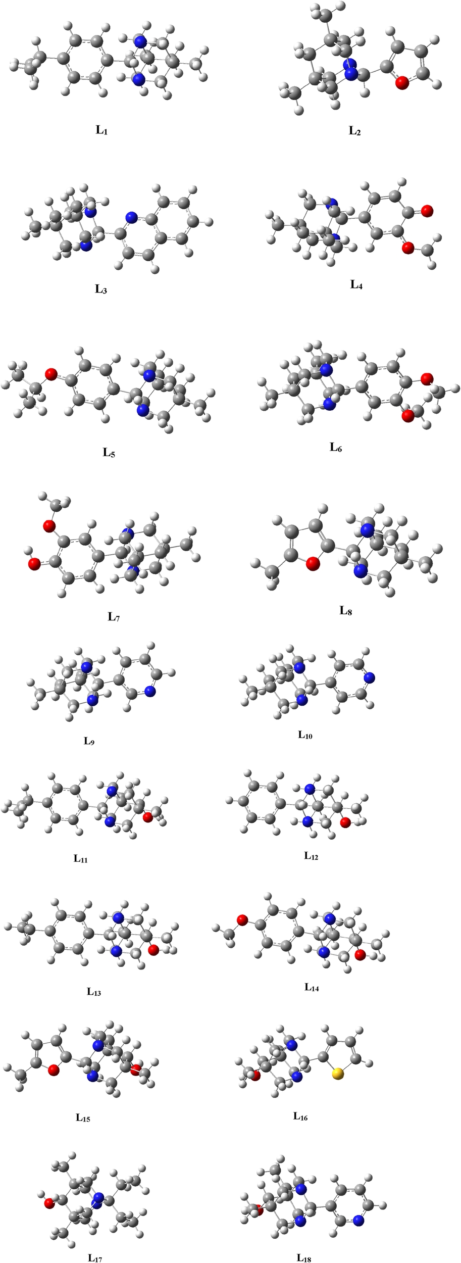 Optimized structures of the Ligands (L1-L18) .