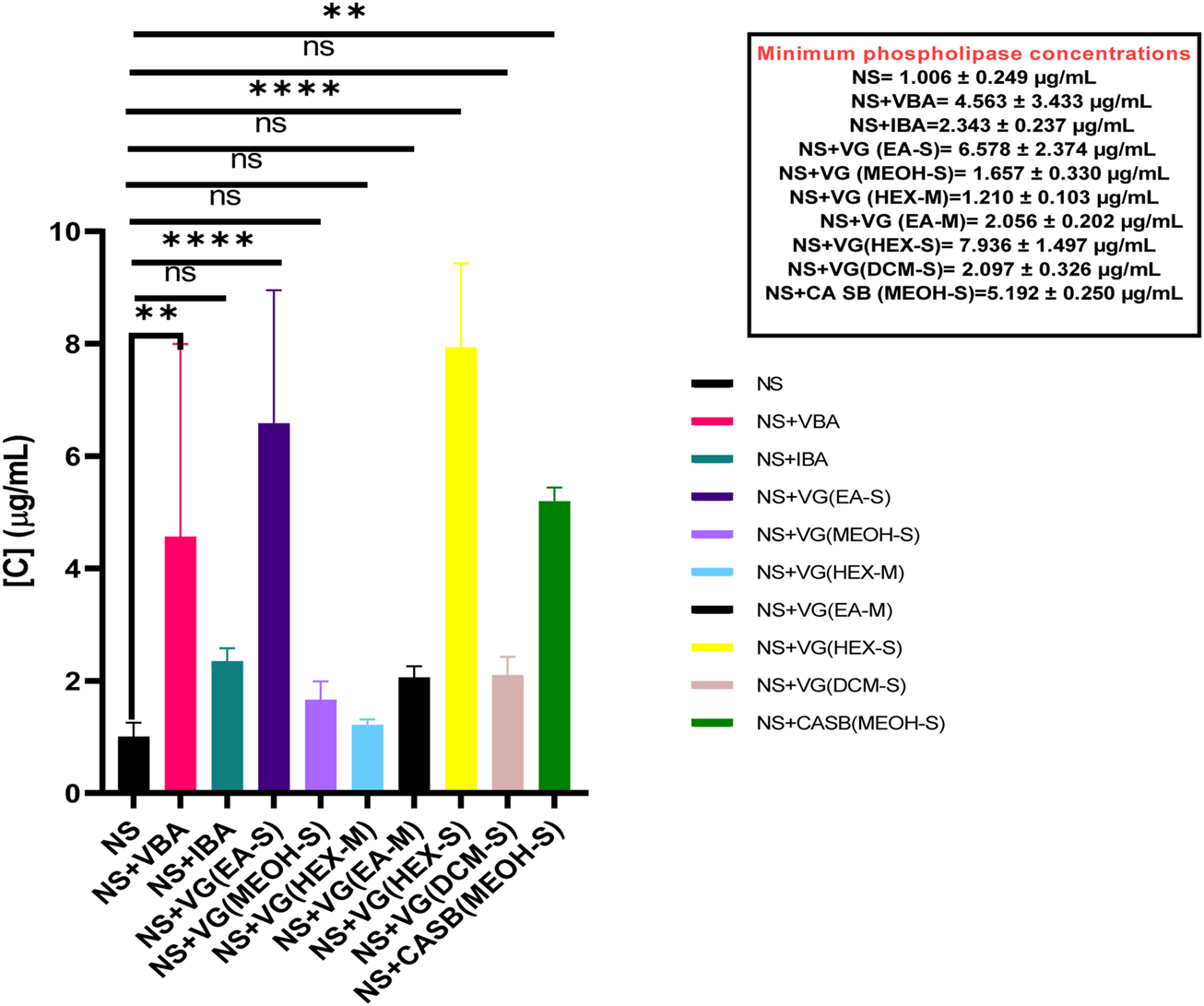 >90% anti-svPLA2 inhibition was noted against NSV with hexane and ethyl acetate fractions of V. glabra leaves and dichloromethane, ethyl acetate, and methanol extracts of C. africana bark (Table 1).