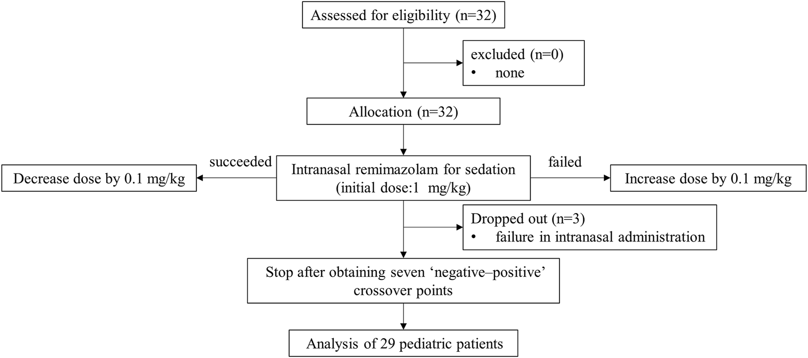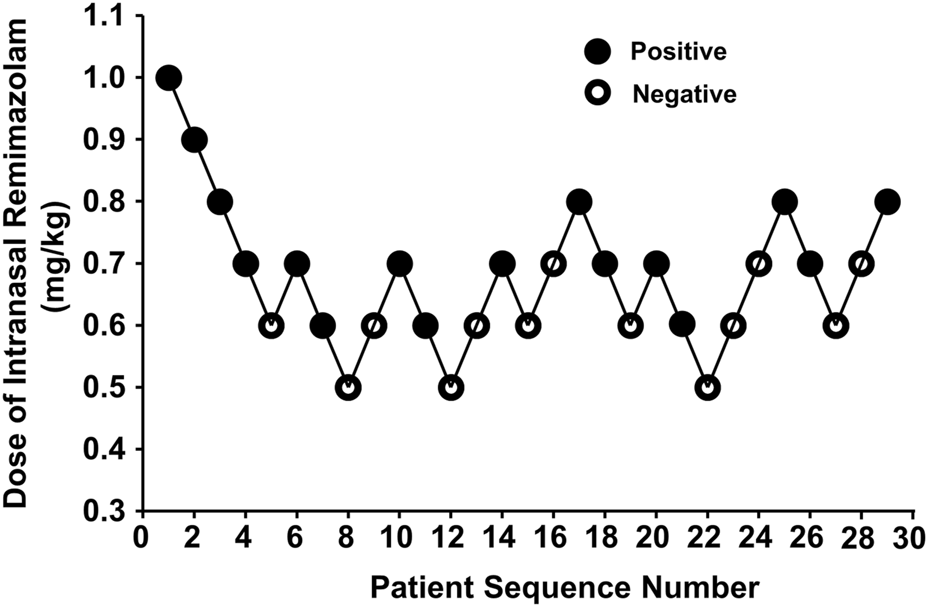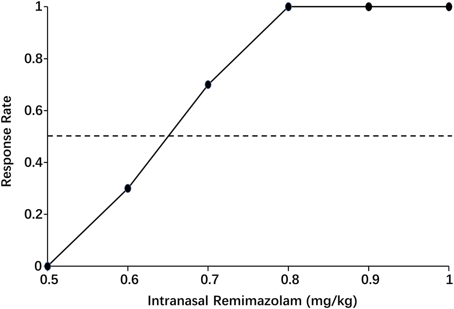 The primary outcome of the current study was the dose of intranasal remimazolam determined for each pediatric patient using Dixon’s up-and-down method.