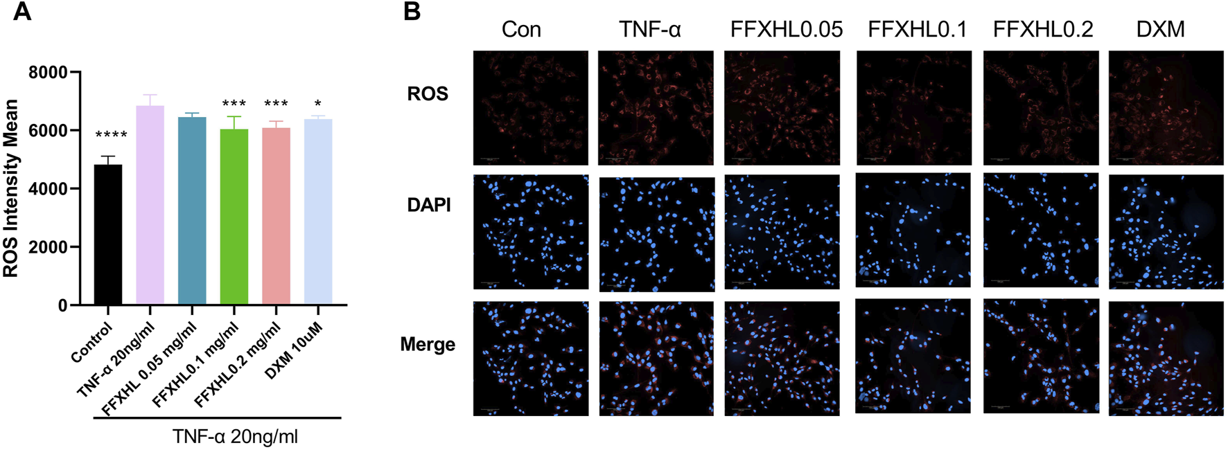 3.8 FFXHL suppresses the ROS level in TNF-α stimulated MH7A cells