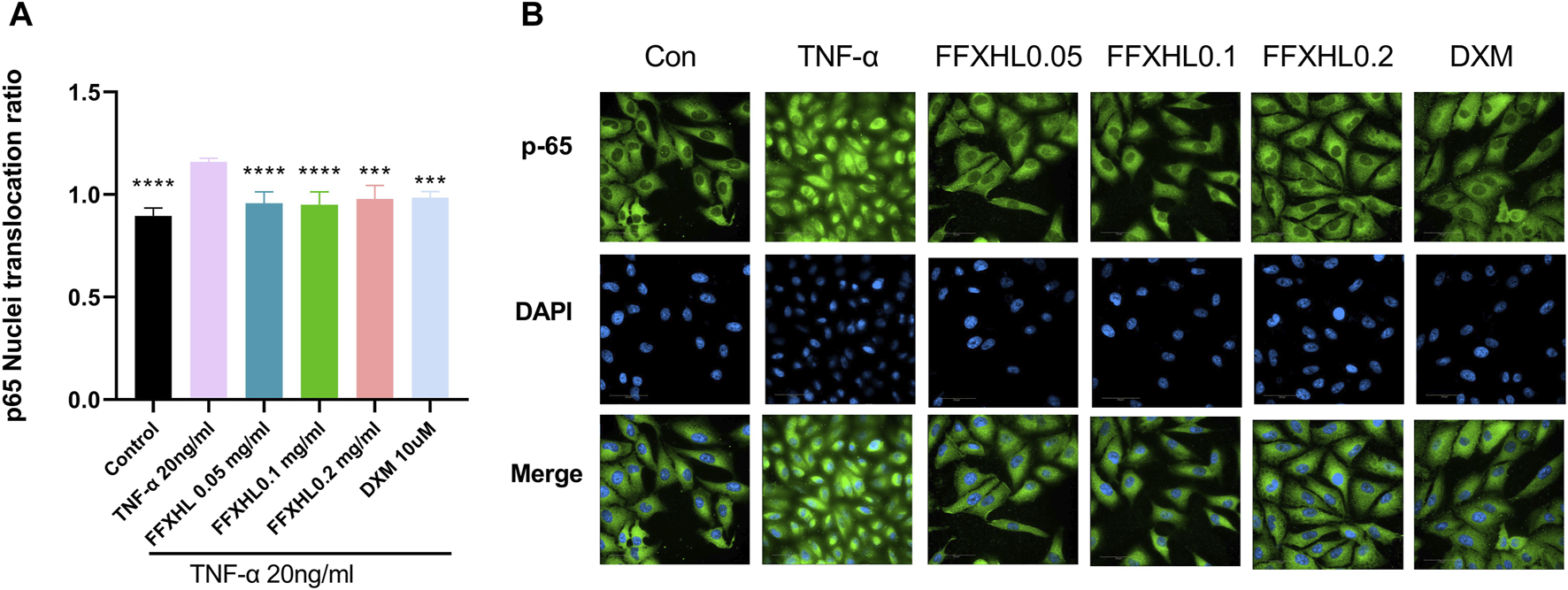 3.9 FFXHL inhibits NF-κB p65 nuclear translocation in TNF-α stimulated MH7A cells