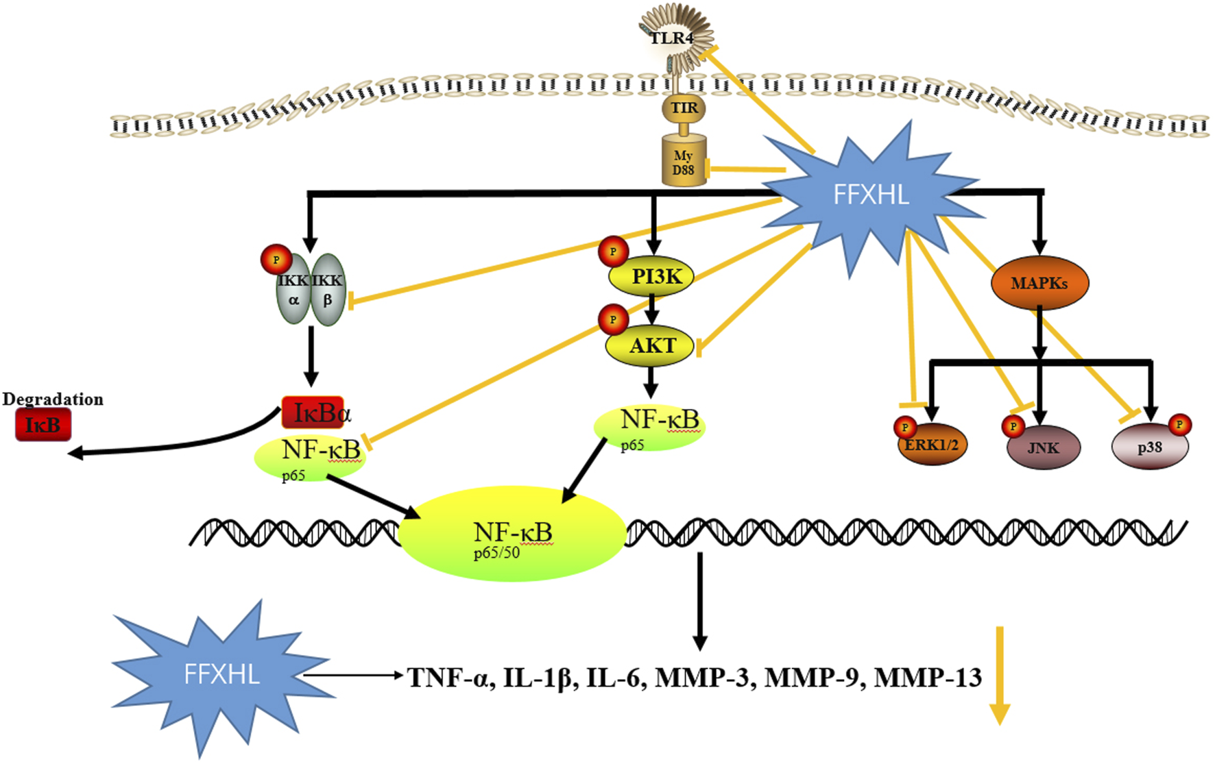 3.11 FFXHL inhibited theTLR4/MYD88/NF-κB, MAPKs and Akt pathways in MH7A cells