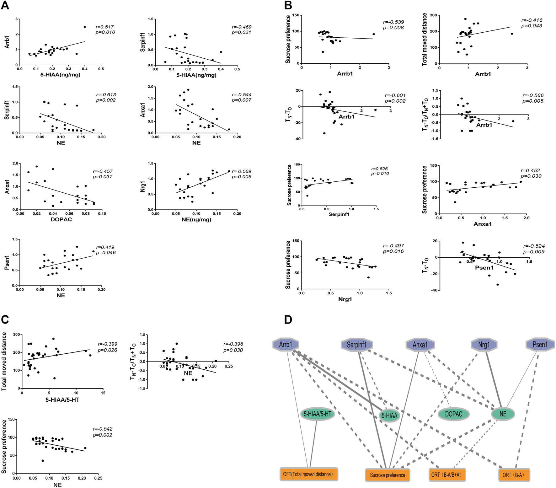 3.5 Correlation analysis showed that Anxa1, Nrg1, and Psen1 were significantly correlated with pontine NE and depression related symptoms