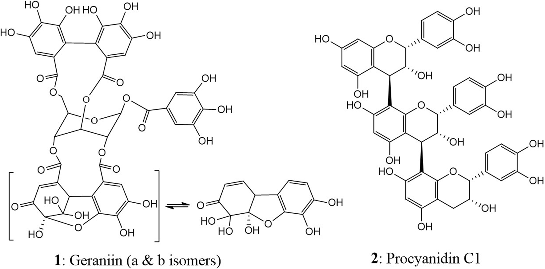 Chemical structures of geraniin (1) and procyanidin C1 (2).