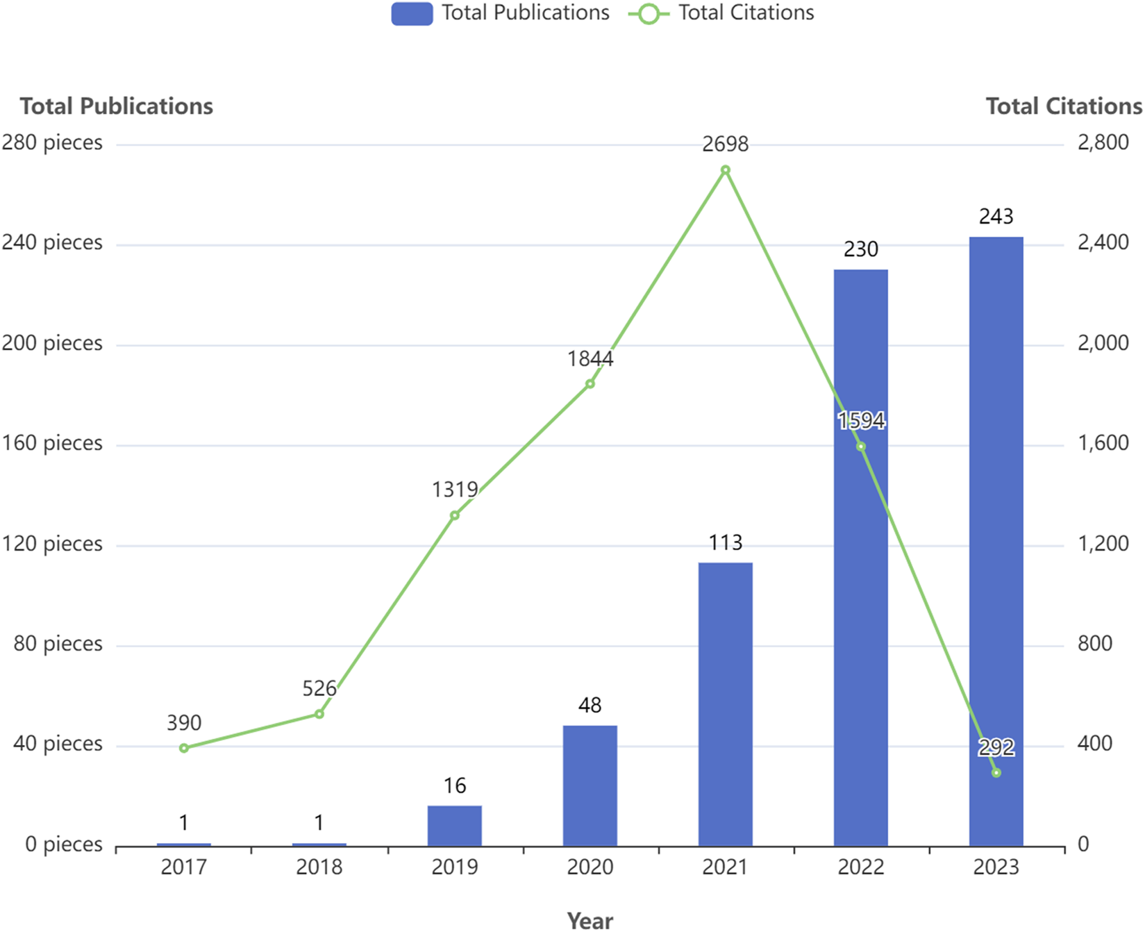 Overall trend in the number of publications over the past 7 years.