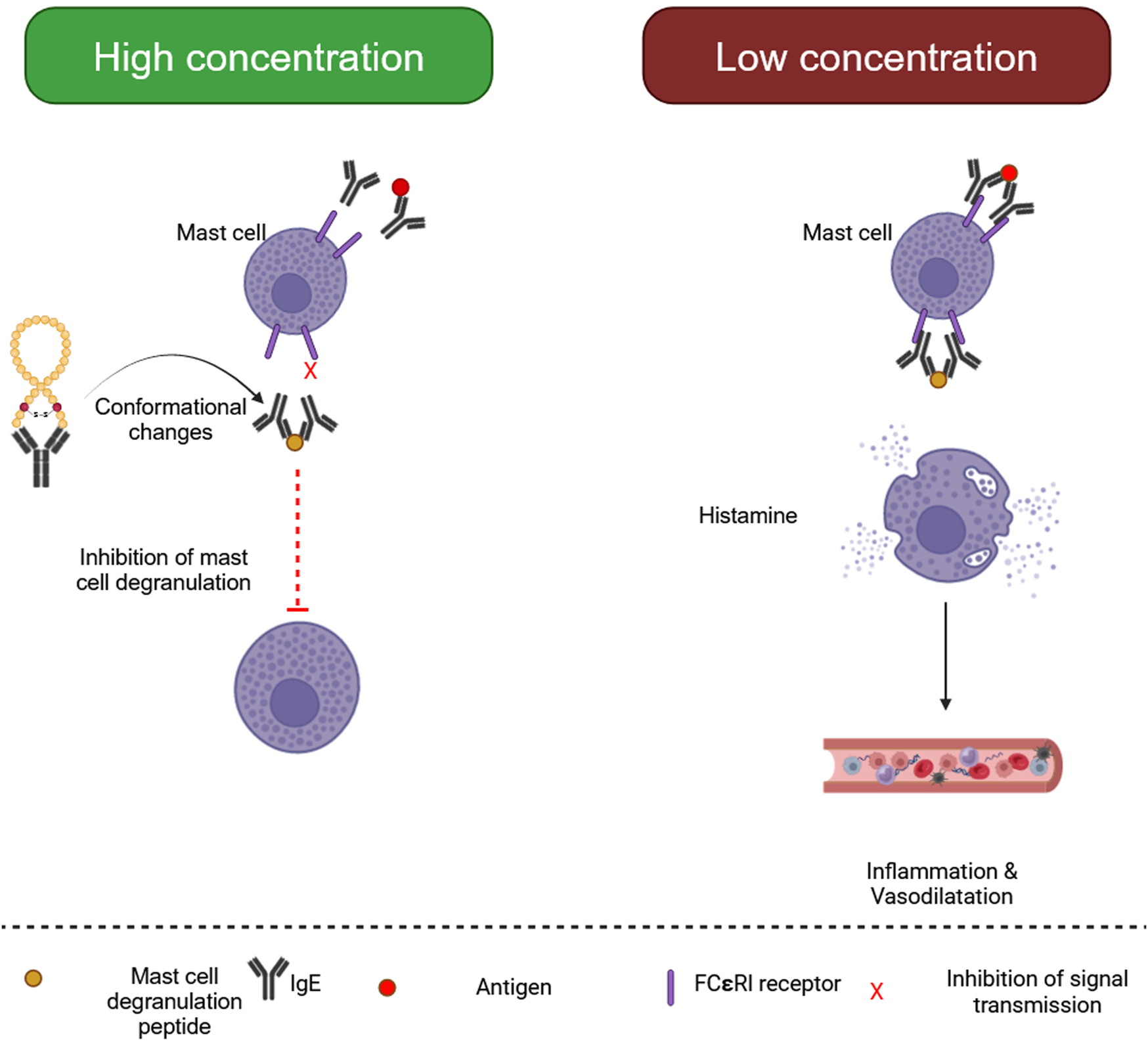 Biological processes of mast cell degranulating (MCD) peptide. (Generated by BioRender software).