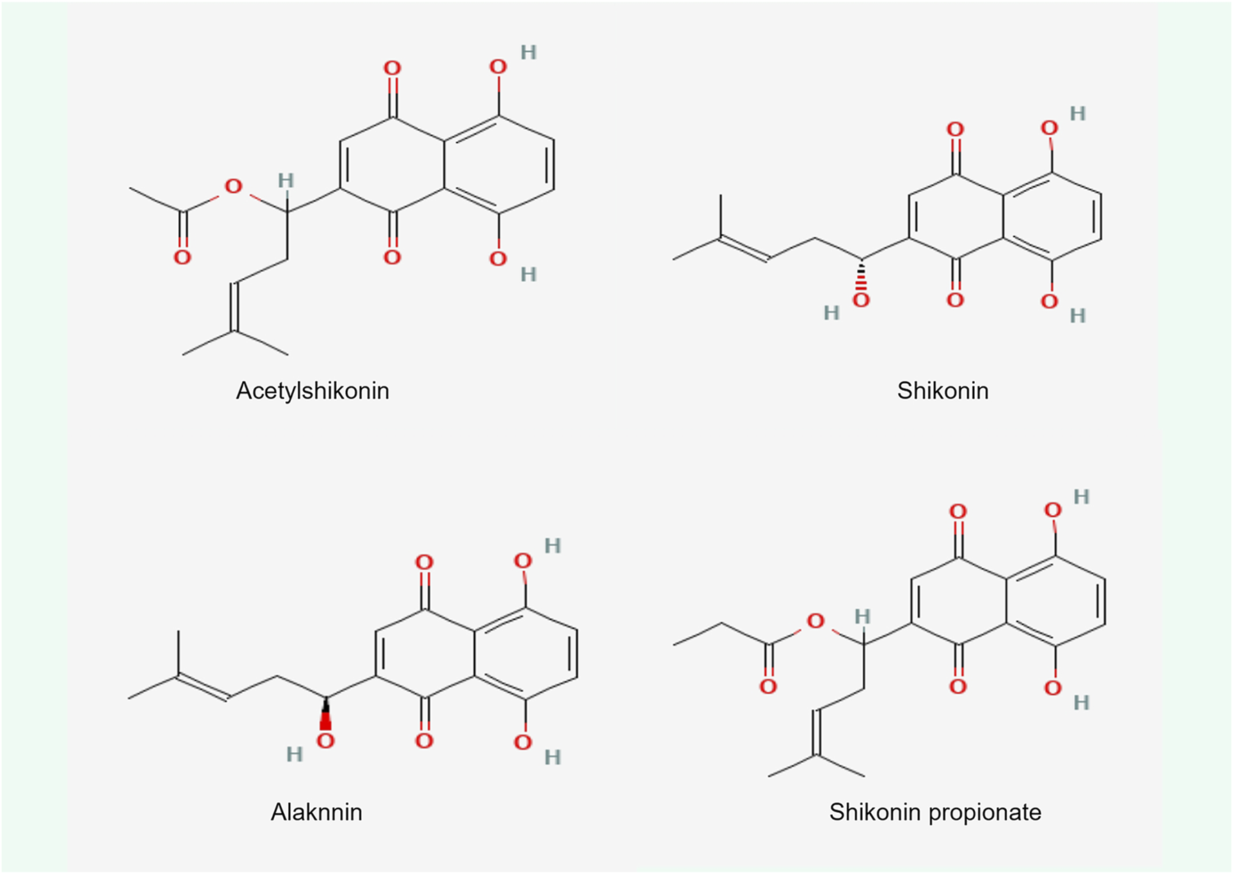 Chemical structure of four shikonin types.