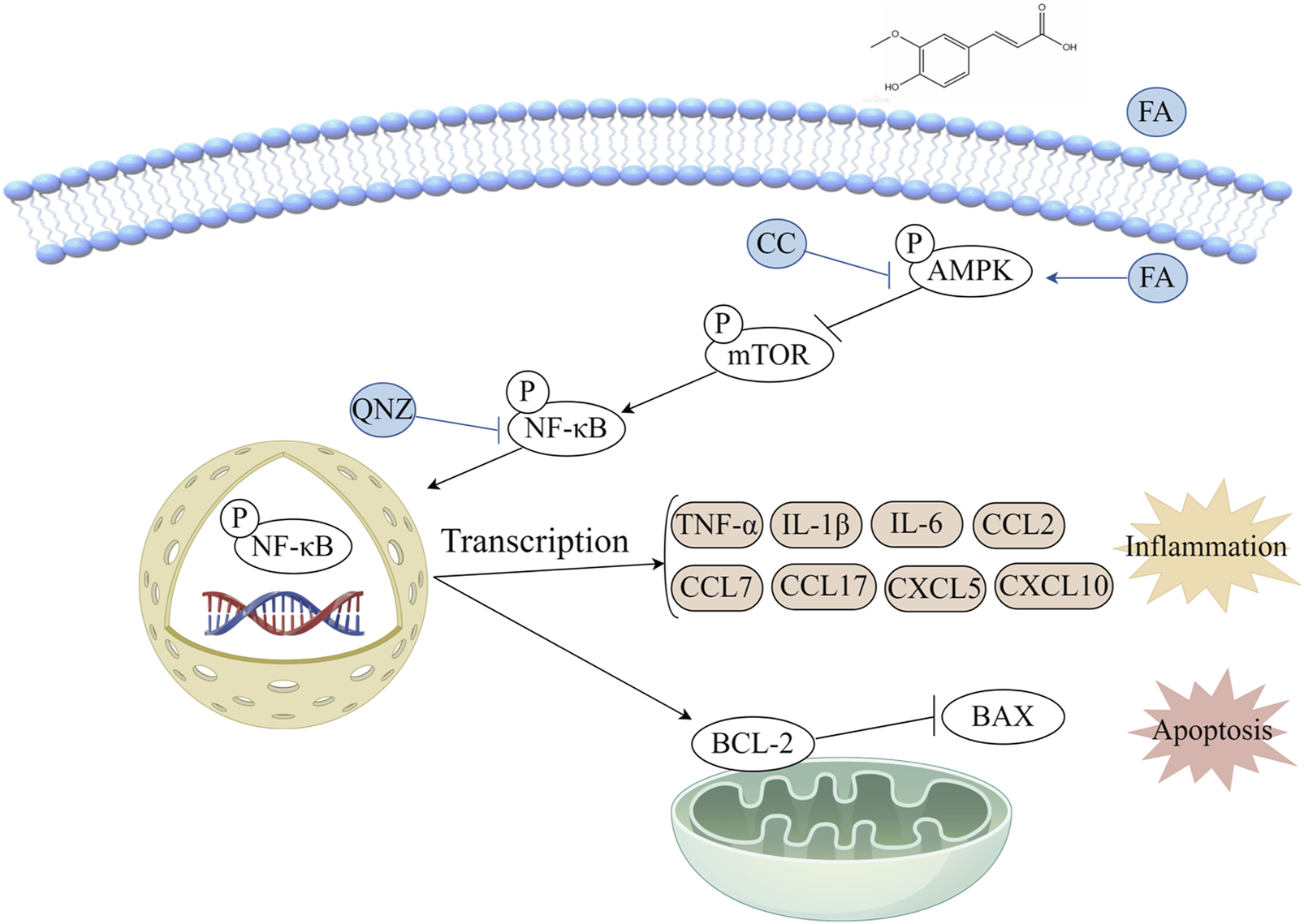 Wu H, Wang Y, Tan P, Ran Y, Guan Y, Qian S, Feng X, Jiang Y, Peng Y, Sheng K, Xi H, Ji W and Guo X (2024) Ferulic acid suppresses the inflammation and apoptosis in Kawasaki disease through activating the AMPK/mTOR/NF-κB pathway. Front. Pharmacol. 15:1420602. doi: 10.3389/fphar.2024.1420602