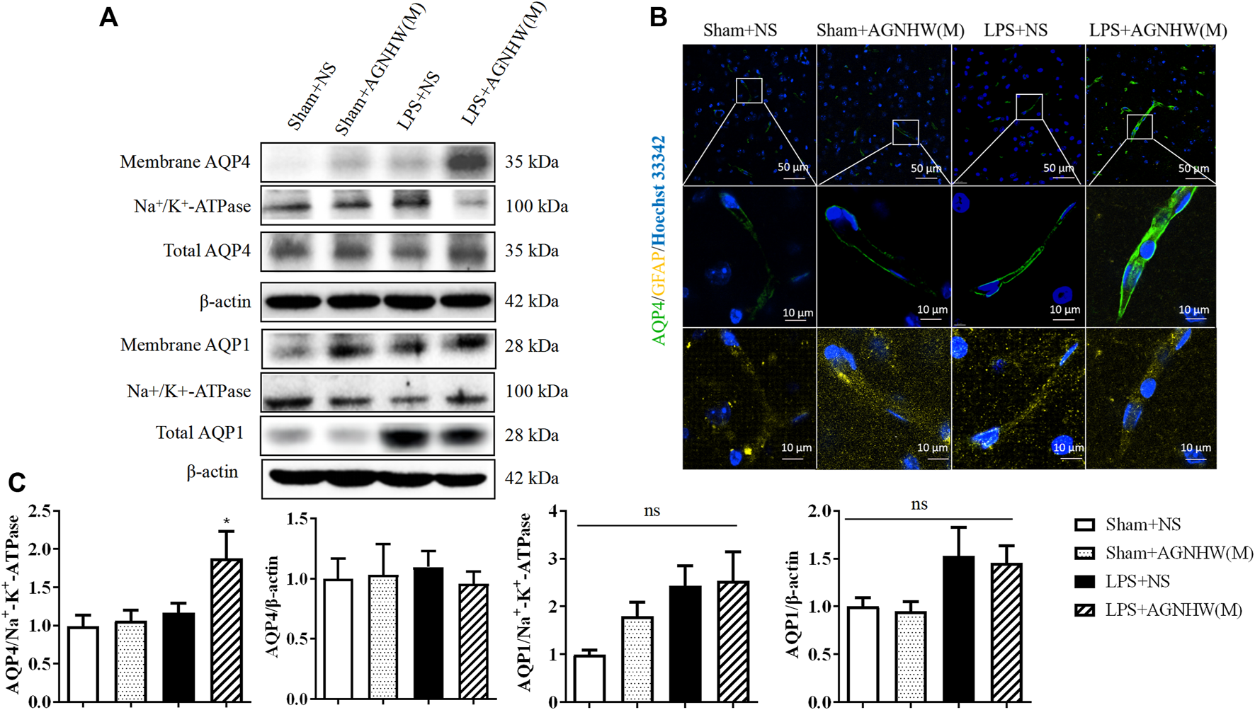 3.4 AGNHW promoted the membrane expression of AQP4 in LPS-Treated mouse brain tissue