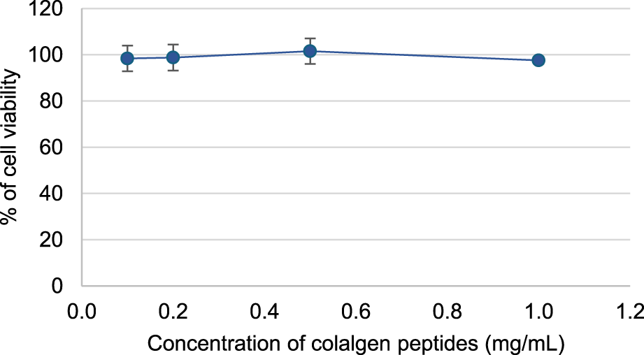 The cytotoxicity effect of collagen peptides (0.1–1 mg/mL) in Caco-2 cells was evaluated by MTT viability test as previously described (André et al., 2019). The cytotoxicity assays were done in 3 × 2 replicates for each concentration of sample. 3% of SDS was used as a positive control.