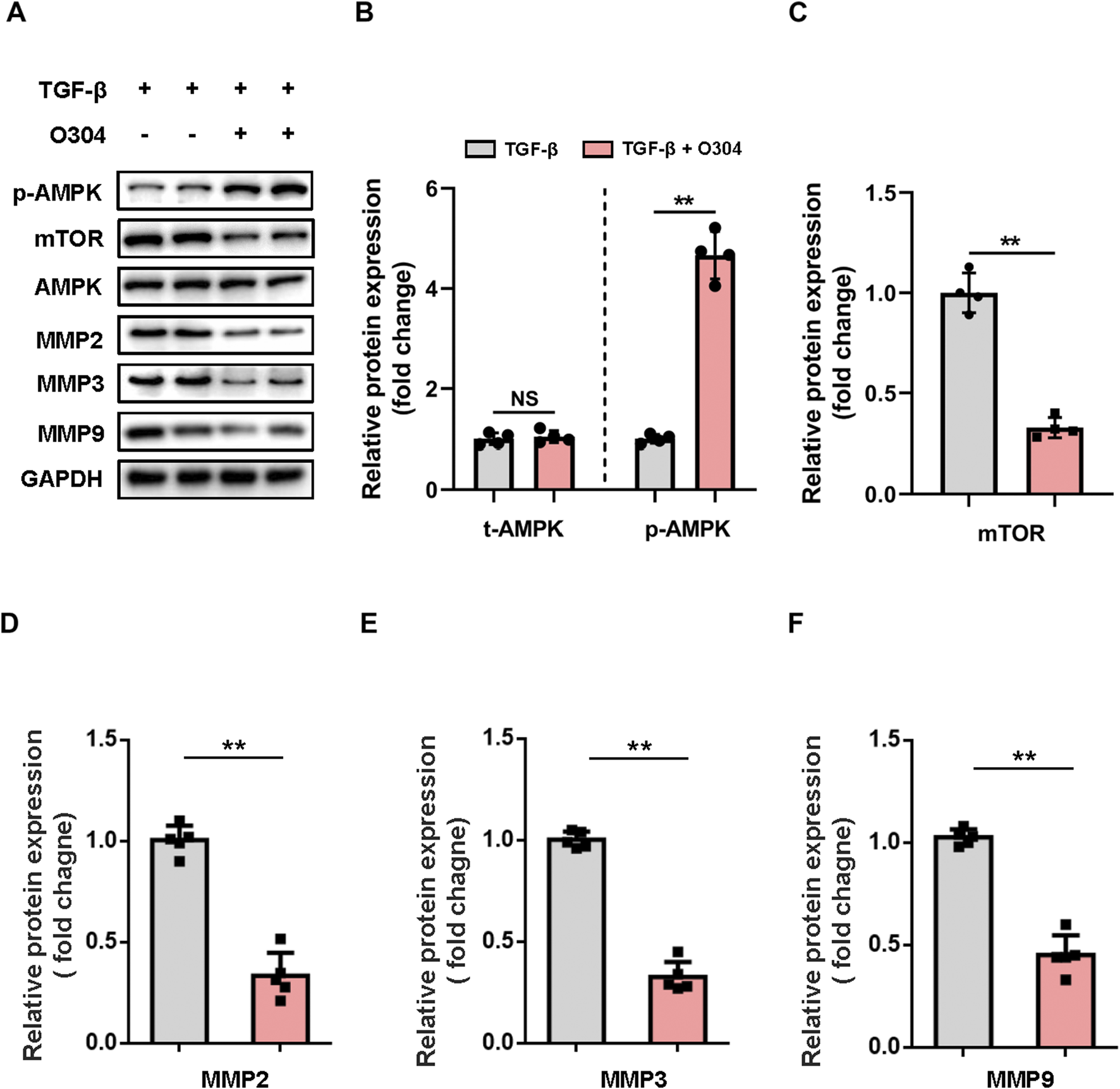 O304 increased AMPK/mTOR/MMP protein expression in vitro