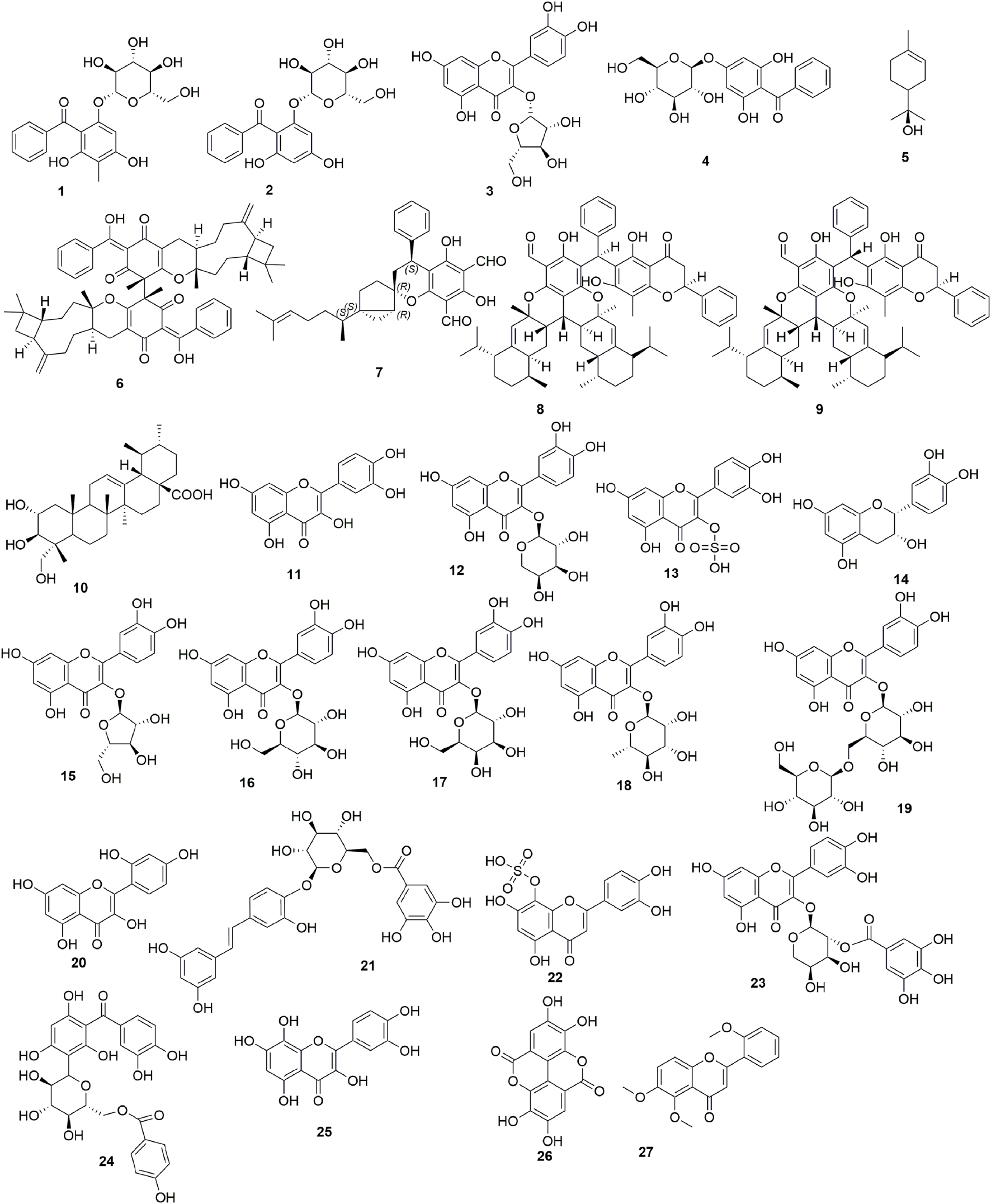 Ukwueze S. E. Osadebe P. O. Okoye F. B. C. (2015). A new antibacterial benzophenone glycoside from Psidium guajava (Linn.) leaves. Nat. Prod. Res.29, 1728–1734. 10.1080/14786419.2014.1003188