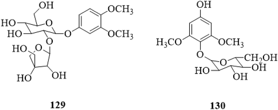 | 43 | (3S,5S,10S,15S)-3β-[β-D-Glucopyranosyl-(1→6)-β-D-glucopyranosyl]oxy-12-(β-D-glucopyranosyl)oxyabieta-8,11,13-triene-11,16-diol | Stems | n-BuOH | 85%EtOH | Li et al. (2022a) |
