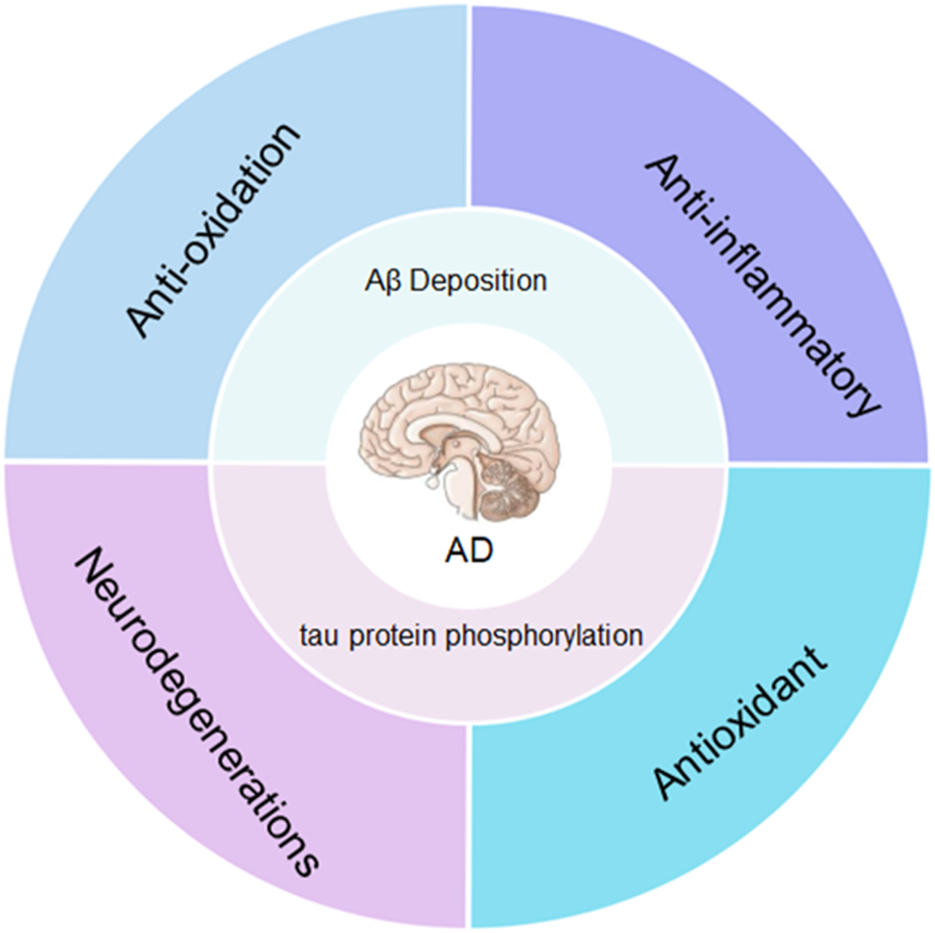 The main pathogenesis of Alzheimer’s disease is the excessive accumulation of amyloid (Aβ) and hyperphosphorylated tau in the brain. Nanoparticles can reduce Aβ and tau protein phosphorylation through anti-aging, anti-inflammatory, antioxidant and promote nerve regeneration.