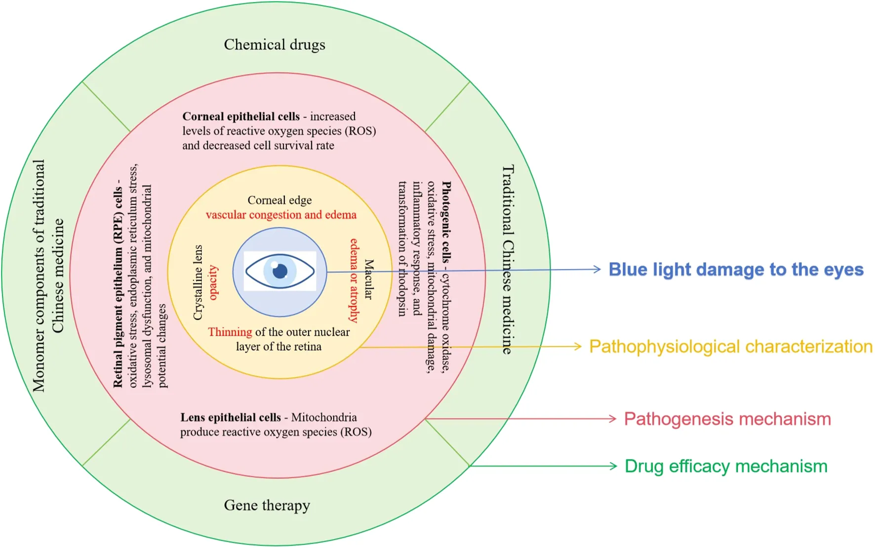 2 Pathological characteristics and pathogenesis of blue light damage in the eyes