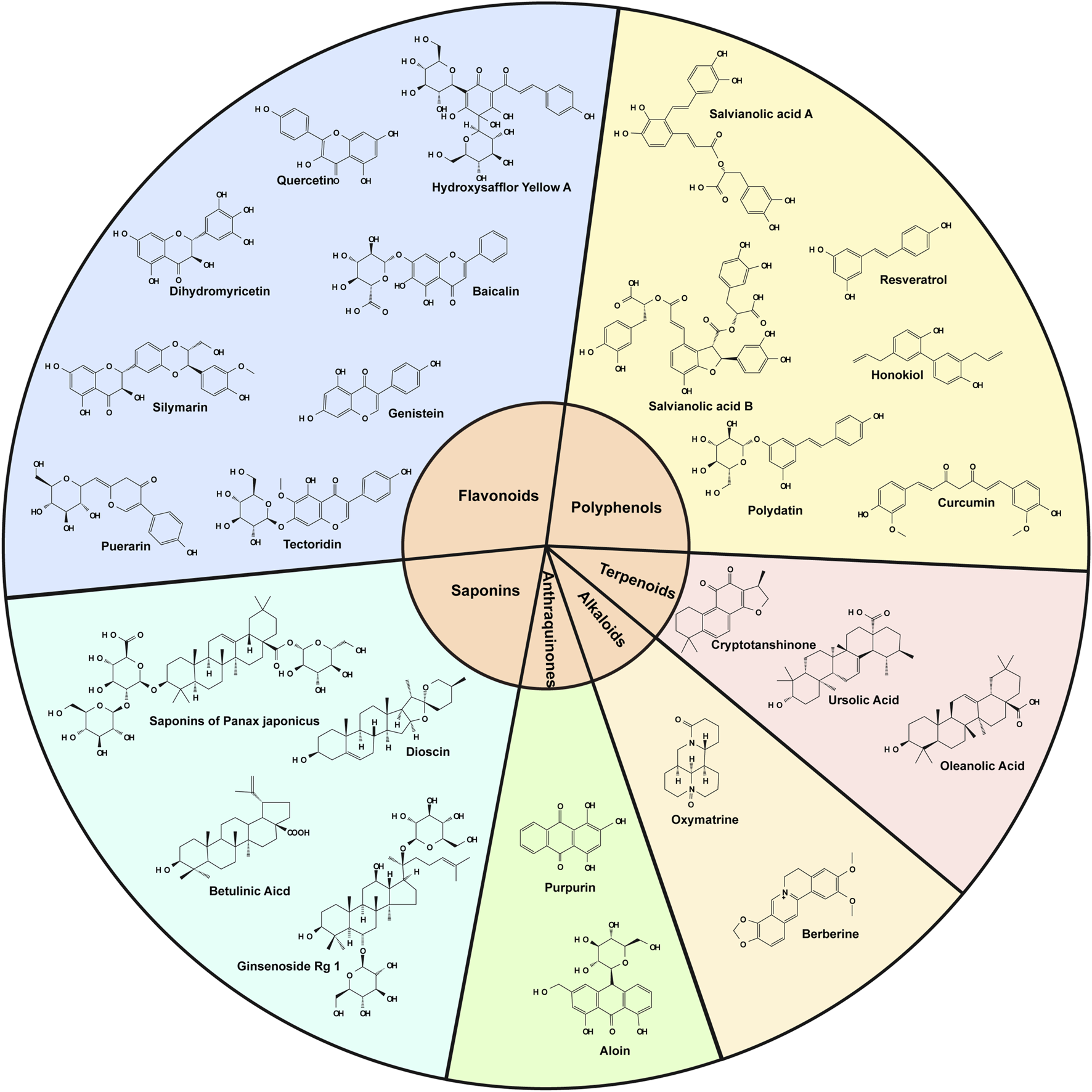 | Hydroxysafflor yellow A | Carthamus tinctorius L. [Asteraceae] | Chronic and binge alcohol-feed SPF C57BL/6 mice for 16 days | HSYA 2.5 and 7.5 mg/kg for one time | ↓AST; ↓ALT ↓TG; ↓TC ↑HDL-C |
