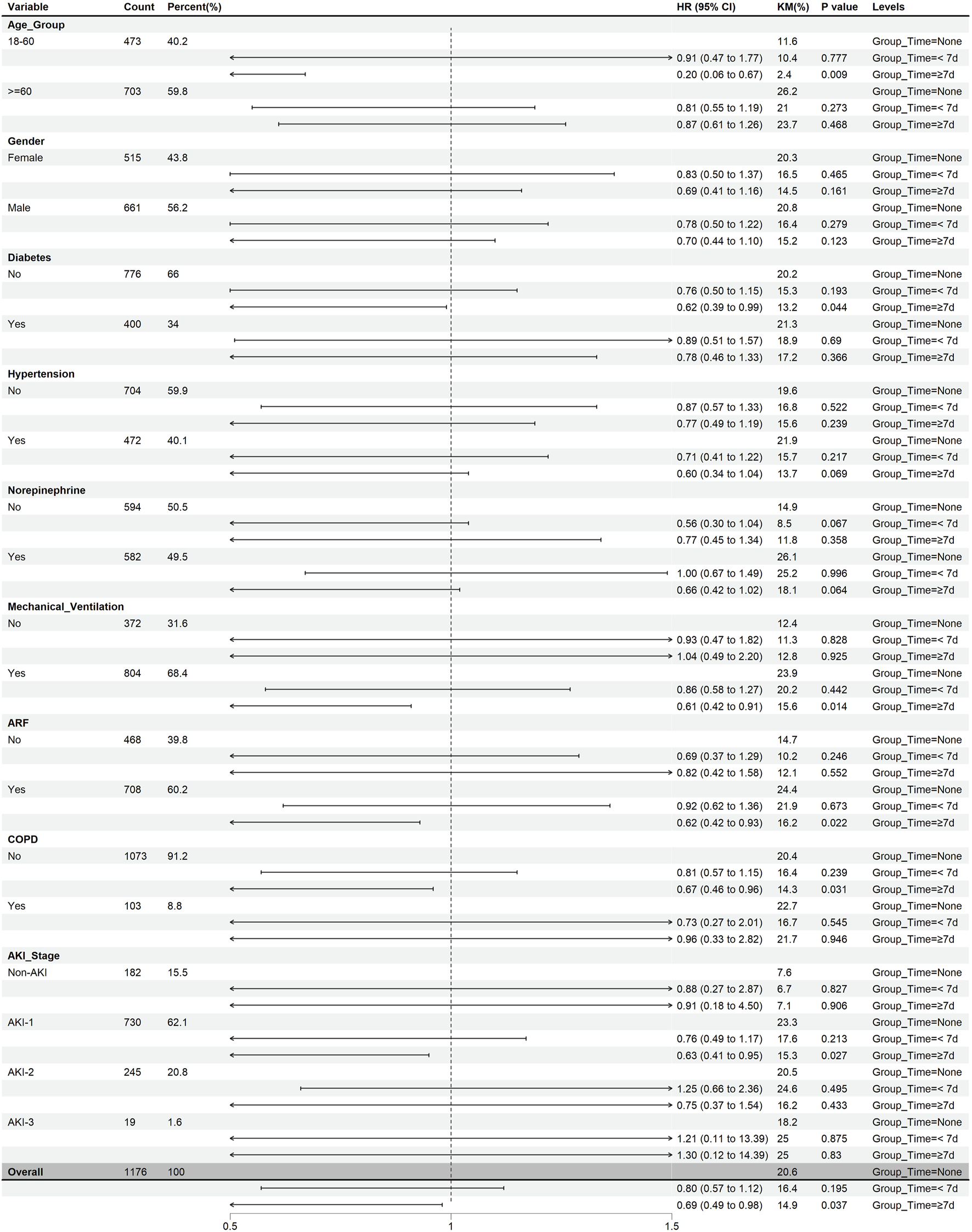 The primary outcomes of this study were the 30-, 45-, and 60-d mortality rates. Secondary outcomes included ICU stay duration (LOS_ICU), hospital stay duration (LOS_Hospital), in-hospital mortality, and gastrointestinal hemorrhage.