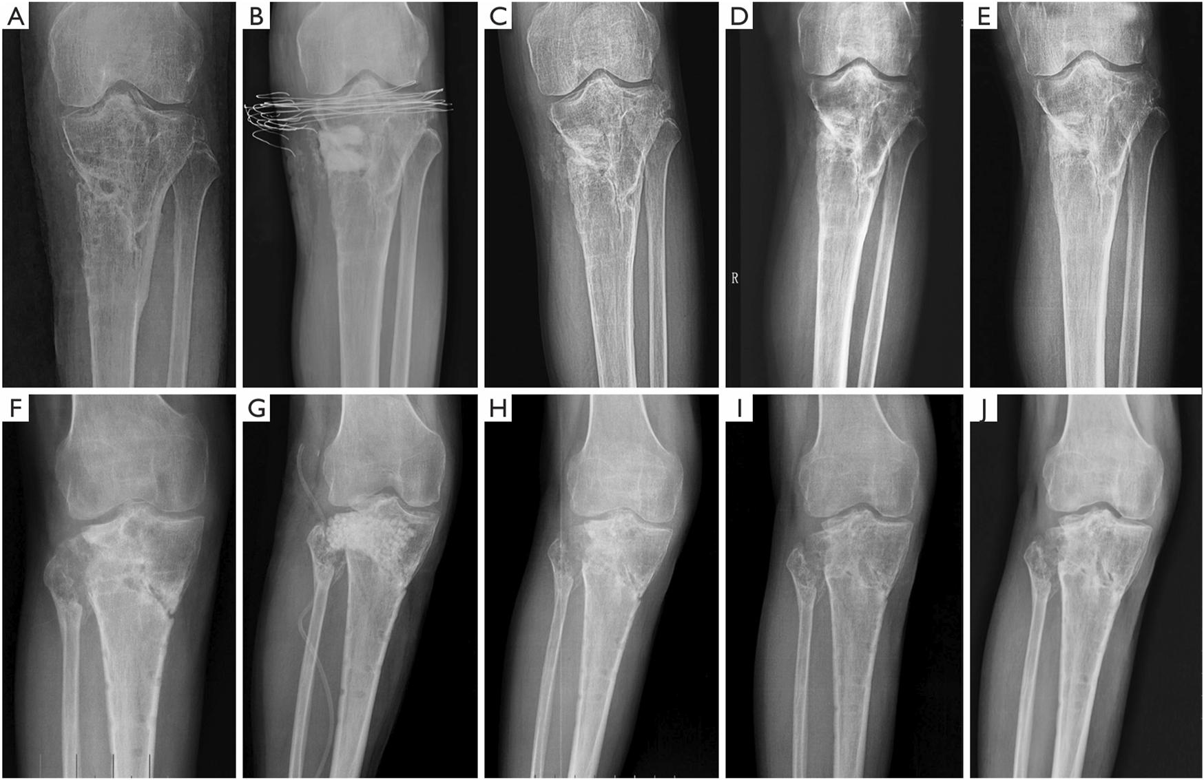 To harmonize the resorption rate of the bone cement matrix with the rate of new bone formation, a multifunctional calcium phosphate-calcium sulfate complex bone cement was developed, exhibiting antimicrobial, osseointegrative, and degradable properties. Building upon the established potential of this cement as an effective antibiotic delivery system, as demonstrated by Mistry et al. (2016) through animal experiments, Zhao et al. (2020) reported the first clinical application of calcium phosphate (dicalcium phosphate (DCP) + β-TCP)-calcium sulfate complex bone cement impregnated with vancomycin in the treatment of chronic osteomyelitis caused by S. aureus infection. When compared to vancomycin-impregnated CSC used as a control, the composite bone cement exhibited superior new bone growth and a lower rate of infection recurrence (Table 2; Figure 3).