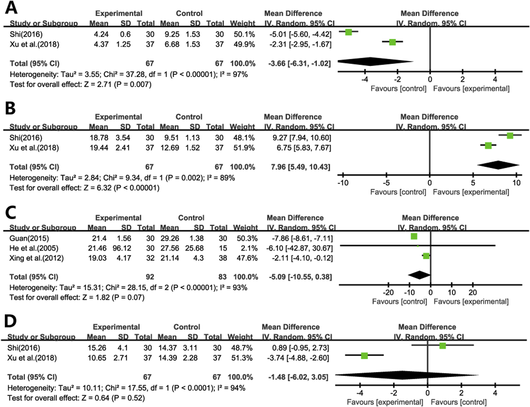 | TNF-α | 15.31 | 28.15 | 2 | <0.001 | 93 | 1.82 | 0.07 |