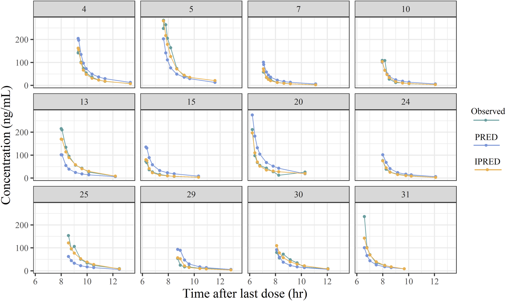 Baseline data were expressed as frequencies (percentage) for discrete variables. Continuous variables were presented as median (minimum-maximum) and interquartile range. R software (version 4.2.2) was used for statistical analysis and graphical plotting. The analysis procedure was run through Pirana (version 2.9.7). Bootstrap and pcVPC were run on Perl-speaks-NONMEM version 4.8.0 (Uppsala University, Sweden).