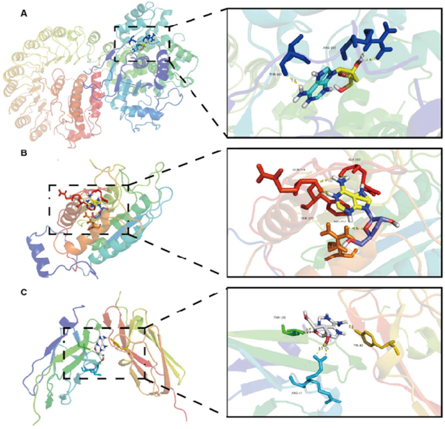 | Target proteins | PDB ID | Binding energy (Kcal/mol) | Amino acid residues interacting with cordycepin |