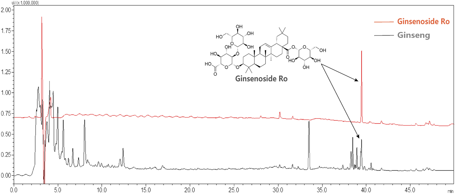 HPLC fingerprint analysis of Ginsenoside Ro in ginseng.