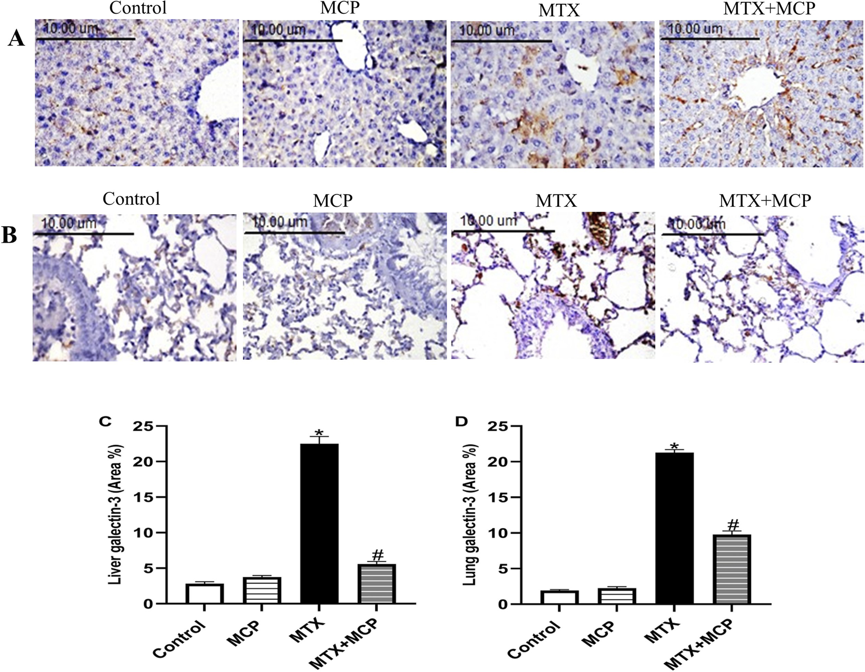 3.6 Effect of MTX and MCP on Gal-3 immunoreactivity in liver and lung tissues