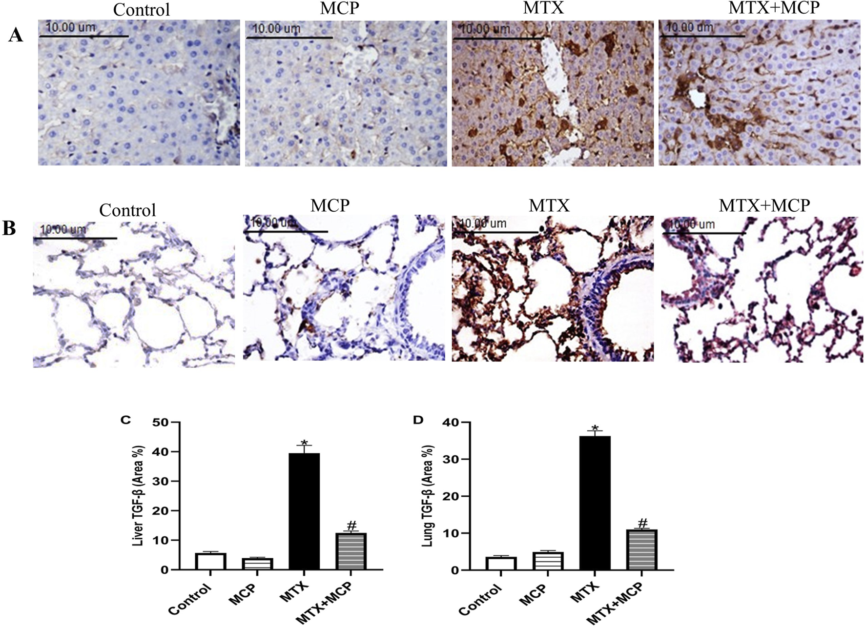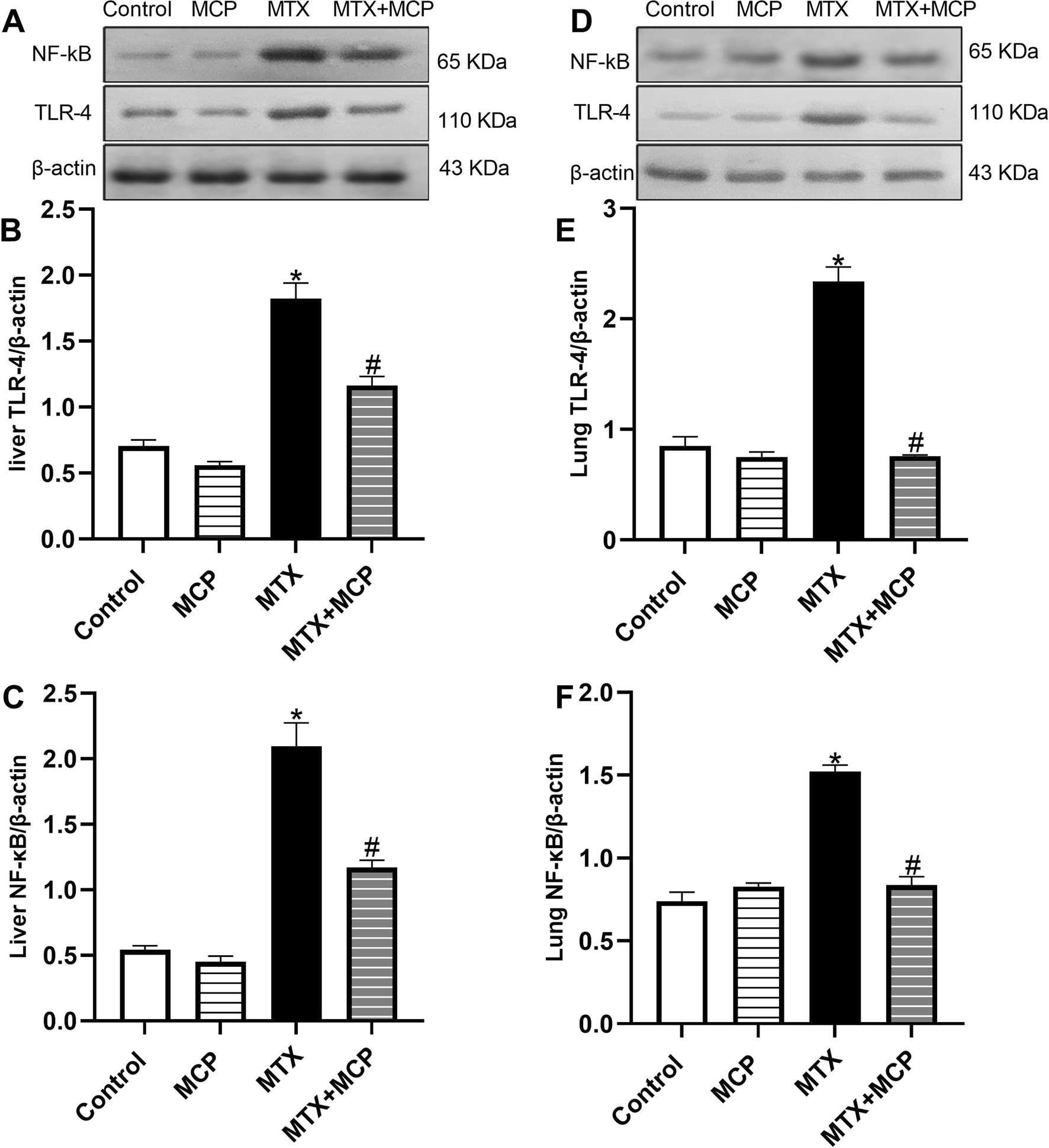 3.7 Effect of MTX and MCP on TLR-4 and NF-κB expression in liver and lung tissues