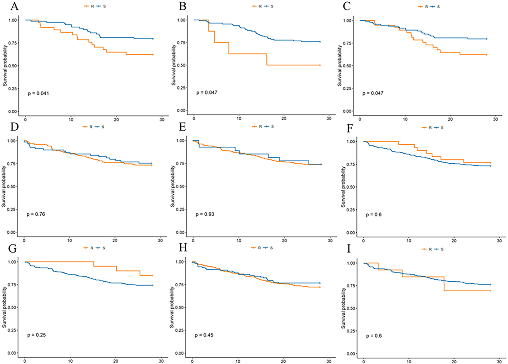 3.4 Effect of MRSA susceptibility or resistance to different antimicrobial drugs on 28-day mortality in patients