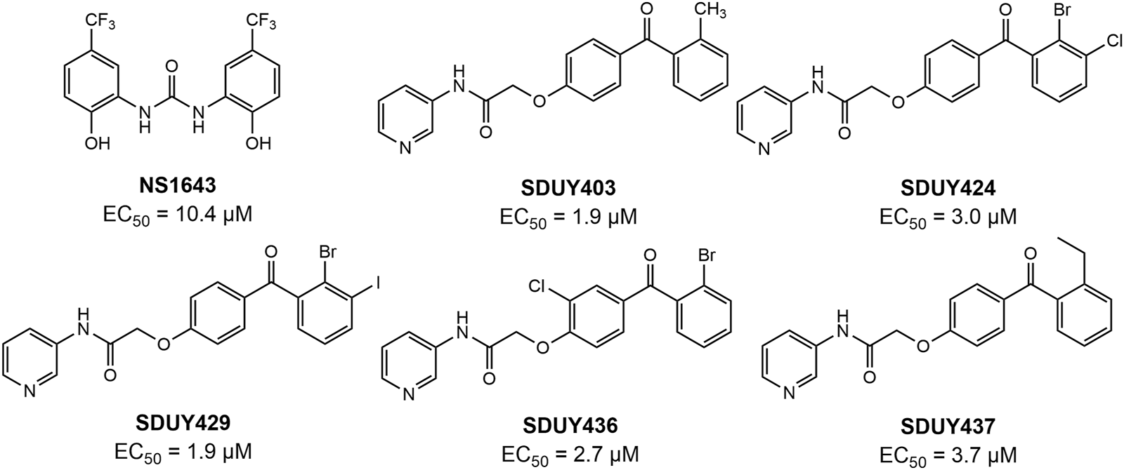 The chemical structures of NS1643 and new hERG channel activators.